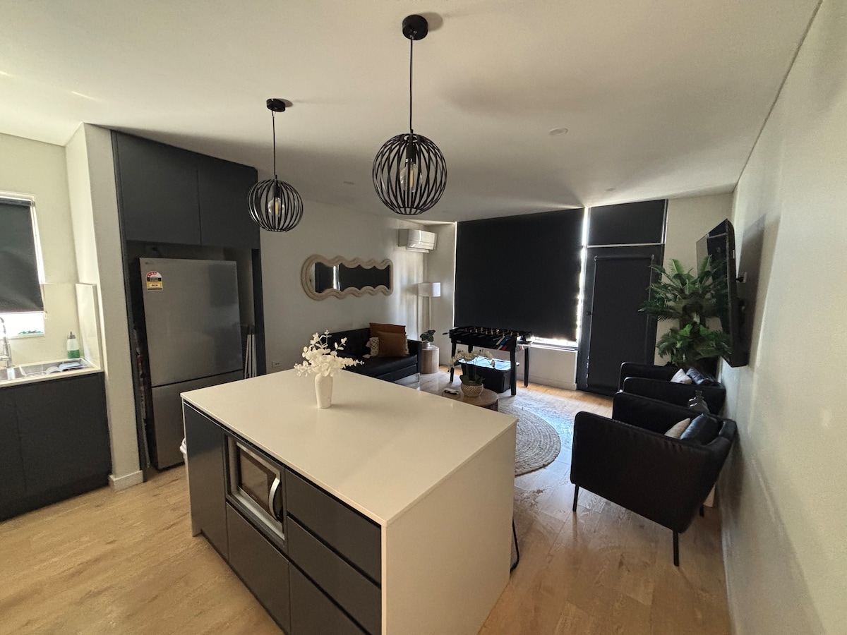 A perfectly situated 1-bedroom apartment with a large courtyard, moments from everything yet whisper-quiet at the rear of a boutique building. Equipped with everything you'd expect in a serviced apartment: luxury Leif toiletries, weekly cleaning, professionally cleaned linen and towels, all kitchen utensils, Nespresso machine, and onsite laundry. A perfect base for your Sydney visit, across from a lovely park and just 2 minutes' walk to the Sydney Metro. Features AC, heating, Wi-Fi and smart TV