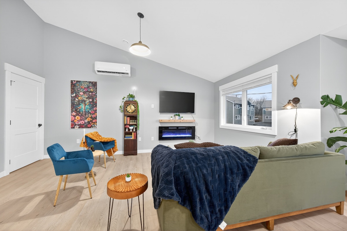 Modern, bright and fully renovated 1-bdr basement apartment centrally located but on a traffic-free street. Perfect for visiting professionals that need to be close to the regional hospital and/or the downtown core. - Large screen smart TV with access to Netflix and DAZN - Coffee table with pull out tray for working comfortably - Fully equipped kitchen - Full size bed w/ USB equipped side lamps - Sofa bed for some great late night large screen watching!