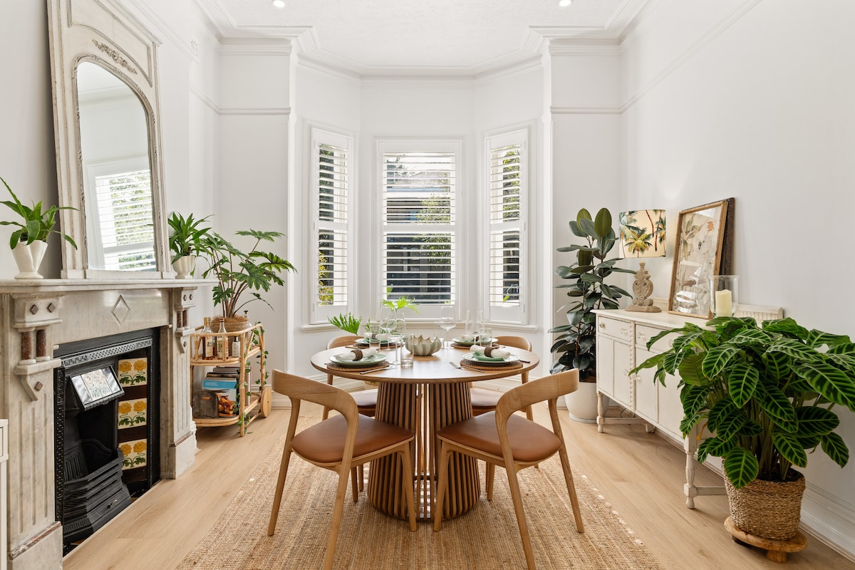 Light filled 2-bedroom Victorian home situated on a quiet street, and a short walk to bustling Enmore Road. Close to a wide array of bars and restaurants, and the famous Enmore Theatre. Conveniently located close to the CBD via Newtown station. Free street parking available on one side of street. Home includes: -2 bedrooms with 2 queen sized beds -Open plan living space with fully equipped kitchen including Nespresso machine with pods -Outdoor dining area with a Heston Blumenthal charcoal bbq