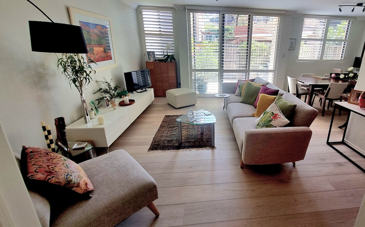 Mosman - one of Sydneys finest suburbs. Beautiful Bright Art Apartment, Master Queen size large bedroom and a lovely Double bedroom. Mosman Ferry 600 metres to city. Cafes and local shops 100 metres from front door. Luxury boutiques 600 metres to gorgeous strip shopping plus a lovely walk to Mosman Zoo, famous Orpheum Cinema and Balmoral Beach and its restaurants Bus at front door. Balmoral beach 10 minutes away. The gateway to the northern beaches. Perfect location.