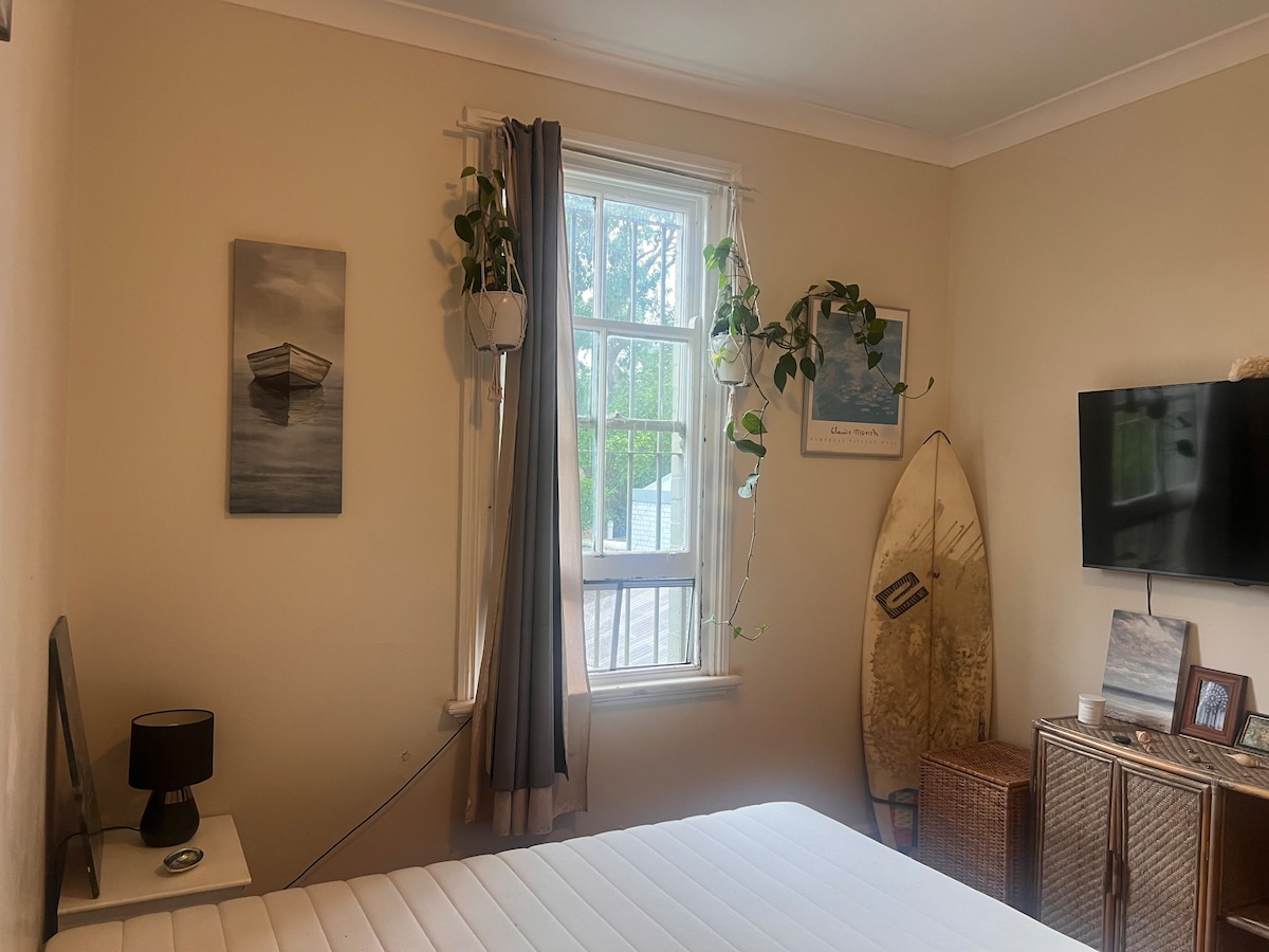 舒适的标准双人床卧室,靠近悉尼中央商务区火车、公交车、电车