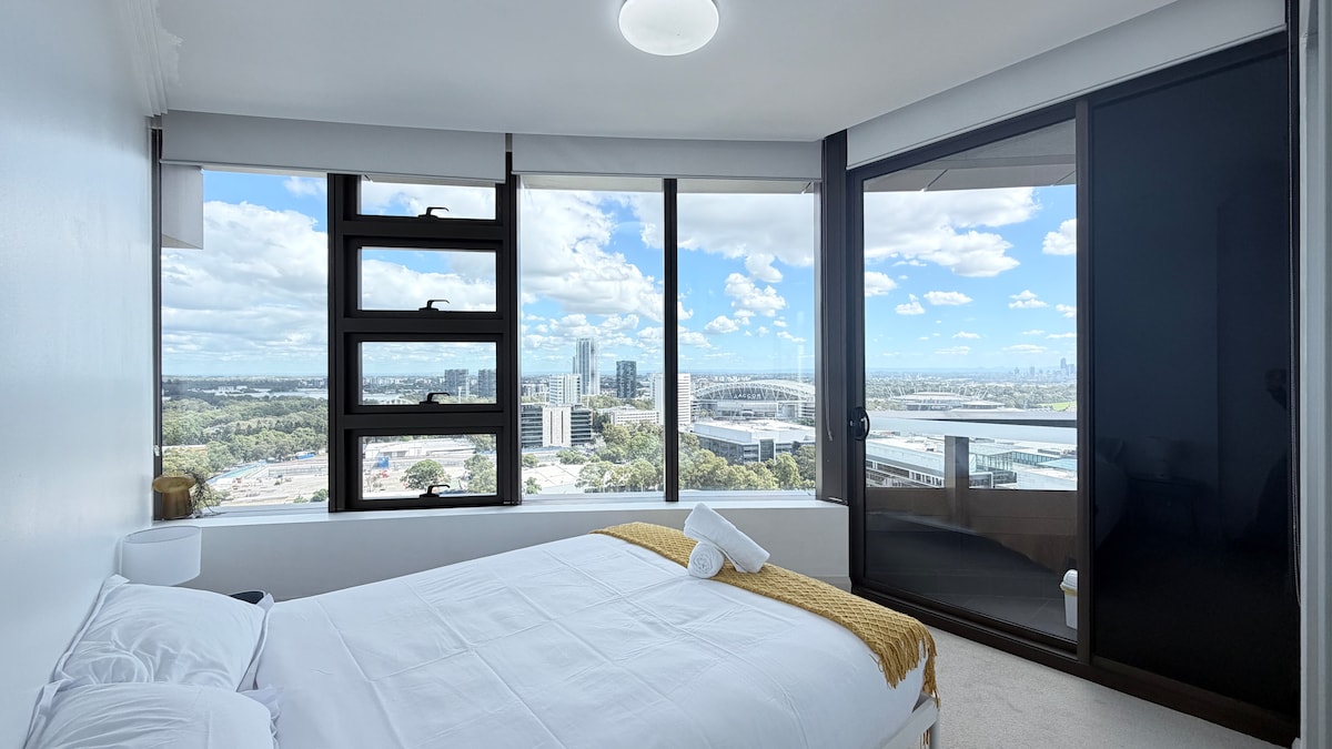 Your Sydney event deserves more than just a place to sleep. Wake up to parkland views. Walk just 12 minutes to Accor Stadium. Come home to space, comfort, and calm while everyone else waits for rides. With 2 full bathrooms (no morning rush), designer interiors, and a private balcony overlooking the city skyline, this is where the entire weekend becomes the memory, not just the event. Ideal for concerts, corporate stays & weekend getaways. Fast WiFi, workspace, washer/dryer, air con throughout.