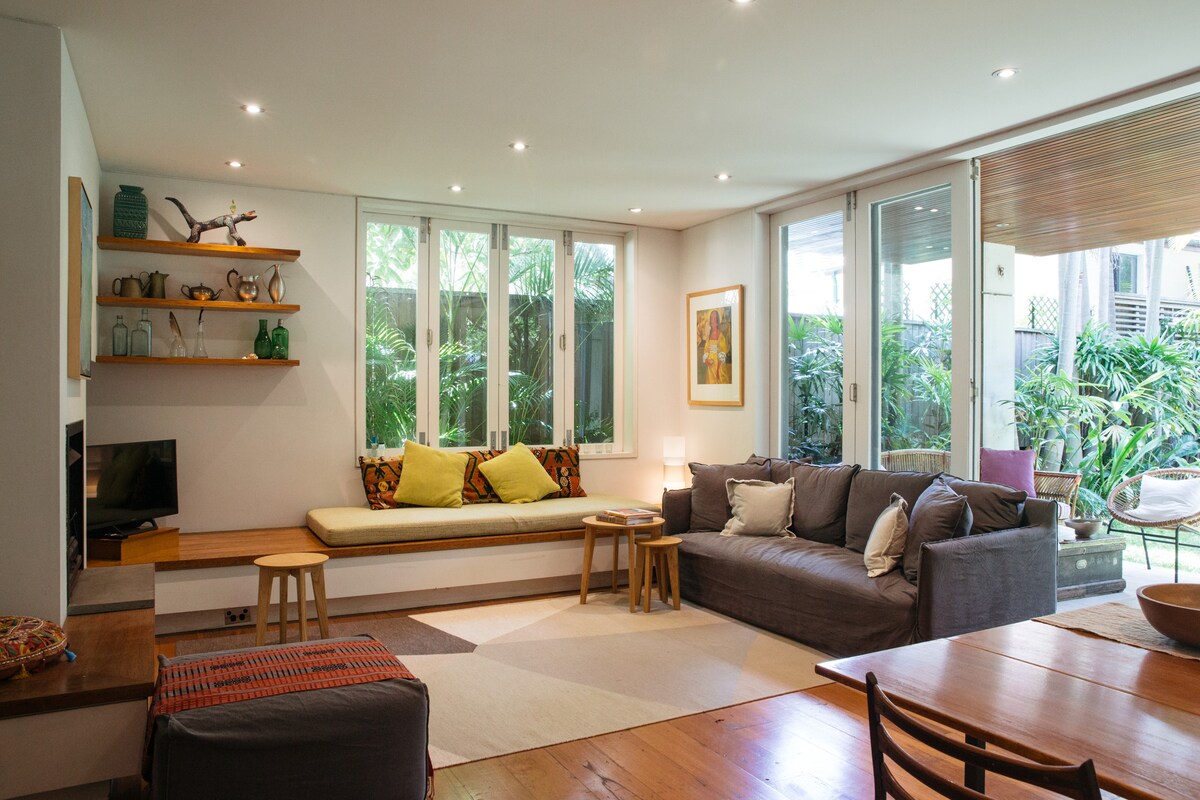 A spacious contemporary apartment with a large under cover verandah, and private tropical garden. The living area is filled with natural light and looks out to a beautiful and tranquil palm-filled garden. We are located 100m from beautiful Camp Cove Beach and just a 5 minute walk to the Watsons Bay ferry service accessing harbour suburbs and the CBD - just 20 minutes away. If you are attending a wedding or getting married we are a short stroll to all of Watsons Bay's wedding venues.