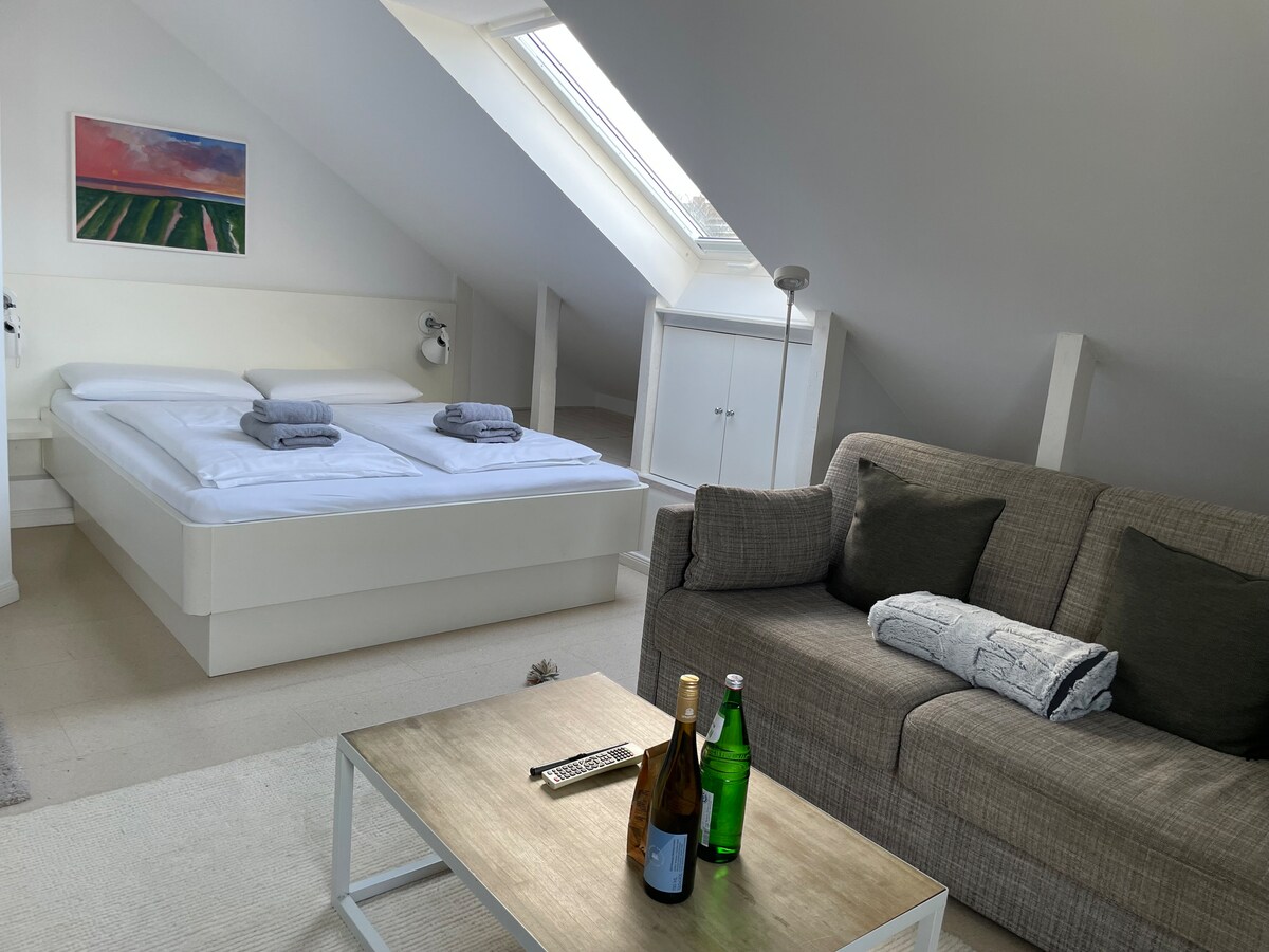 Ruhiger Rückzugsort für zwei, die sich mögen! Inselzentral an der Ortsgrenze zu Westerland. PKW-Stellplatz, WLan, Bettwäsche, Hand- und Geschirrtücher inklusive. In 10 Minuten lauft Ihr zum Bahnhof, zu Sky und Famila in 5 Minuten. Den Strand erreicht Ihr in 20 Minuten. Ganzjährig steht Euch ein Strandkorb auf Eurer Terrasse zur Verfügung.