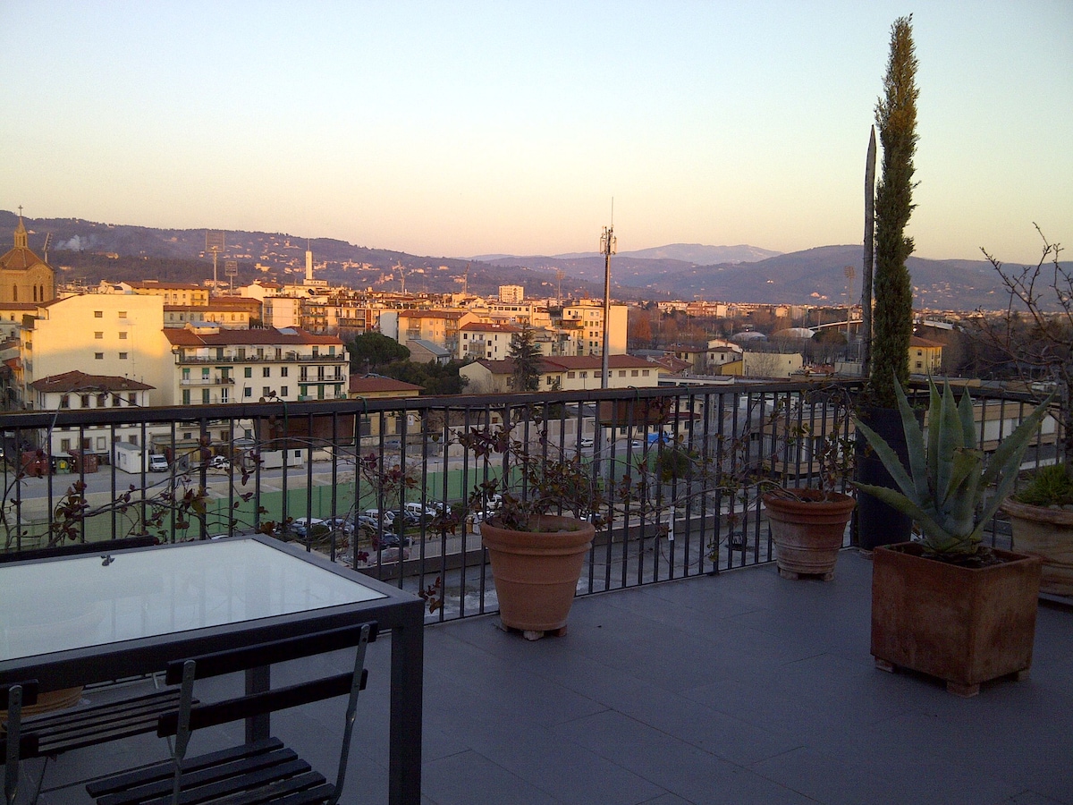 Penthouse with stunning 360° view on Florence and hills, large pvt terrace w/tables, chairs and plants. Furnished w/particular taste, custom pieces, design and value in elegant, quiet and not too touristy area. Less 10 min walk to the beginning of centre and pedestrian area and other 10/15 to main monuments; 3 min from Campo di Marte train station connected to SMN in 5 min w/frequent trains. Bus stops close to the apt. Can be reached w/car, possibility of prkg in the streets around the building.