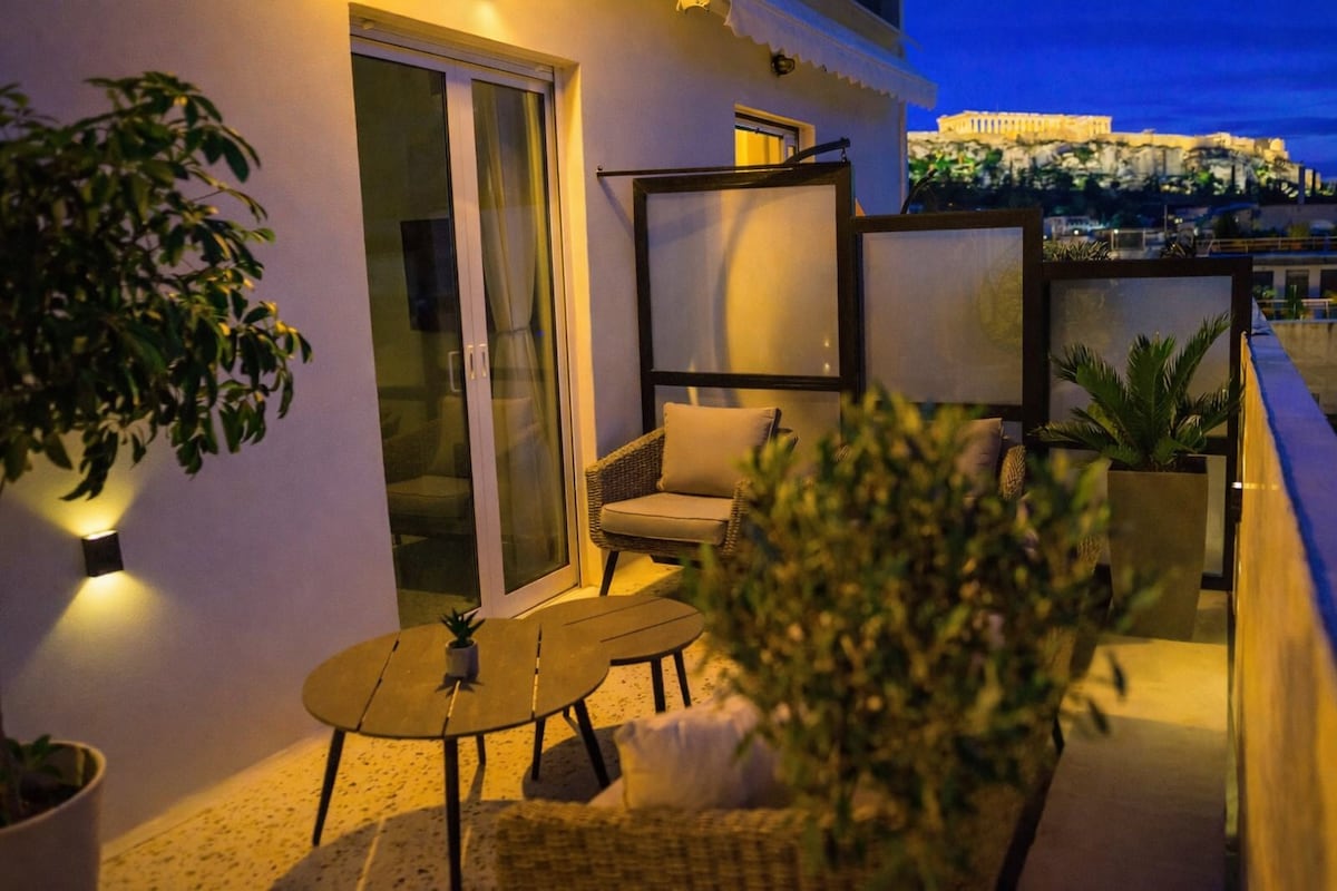 Απαράμιλλη θέα στην ακρόπολη και στο Ηρώδειο.Μοντέρνα διακοσμημένο με έμφαση στη λεπτομέρεια και πολυτέλεια. Ανακαινίστηκε πλήρως το 2024 .Με λειτουργική κουζίνα και ευρύχωρο μπανιο με ντουζιέρα . Το διαμέρισμα διαθέτει ενα υπέρδιπλο κρεββάτι και ενα καναπέ κρεββάτι. Το δωματιο διαθέτει στρώμα ποιότητας με εξοπλισμό αρίστο και μεγαλη συρόμενη ντουλάπα με καθρέπτη.Ο καναπές κρεββάτι ειναι υψηλής ποιότητας και άνετος για ενα ζευγάρι Ο χώρος διαθέτει κεντρικό σύστημα κλιματισμου