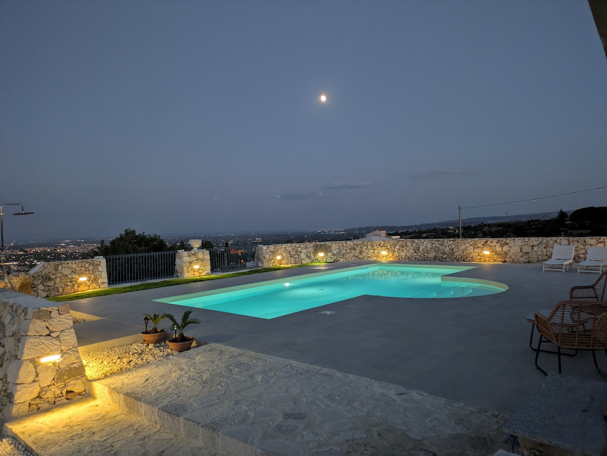 Nel cuore dell'area marina protetta del Plemmirio, villa indipendente di 90mq con piscina a sfioro infinito di 80mq, che offre una vista panoramica mozzafiato sulla costa siciliana dal Plemmirio sino a Capo Passero. La villa è circondata in da un parco di proprietà di 8000 mq ricco di vegetazione tipica siciliana (ulivi, carrubbi, mandorli, pini mediterranei, alberi di gelso, alberi di fico, giardino roccioso con macchia mediterranea).