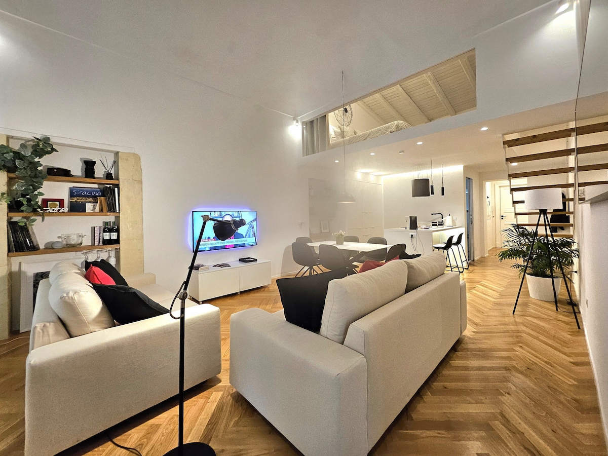 A pochi minuti dai maggiori centri di interesse turistico e a soli 15 minuti a piedi dall'ingresso di Ortigia. Apt. totalmente rinnovato con: -Open space di circa 45mq con balcone. Flat TV 52’’, tavolo 12pax, cucina attrezzata -Zona notte: due camere da letto, due bagni e una suite di circa 28mq con balcone vista Santuario -Arredato con elementi di design -4 condizionatori -riscaldamenti autonomi -high speed free wi-fi -Free parking. Per utilizzare il divano letto, informare l'host in anticipo