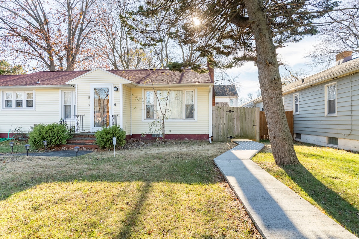 Cozy 1920’s Strathmore home, near Syracuse University, Wireless dome, Onondaga Community College, the Zoo, Destiny USA, Landmark Theater and all of the major hospitals, with Free and private parking. 3 bedrooms, queen, full, twin trundle and small sofa bed, best suited for kids. 1.5 baths, designated office with fast Wi-Fi, after dinner record player room, formal dining room. Full coffee bar, with pour over coffee, drip and keurig, and espresso machine. Sleeps 6,has 5 beds.