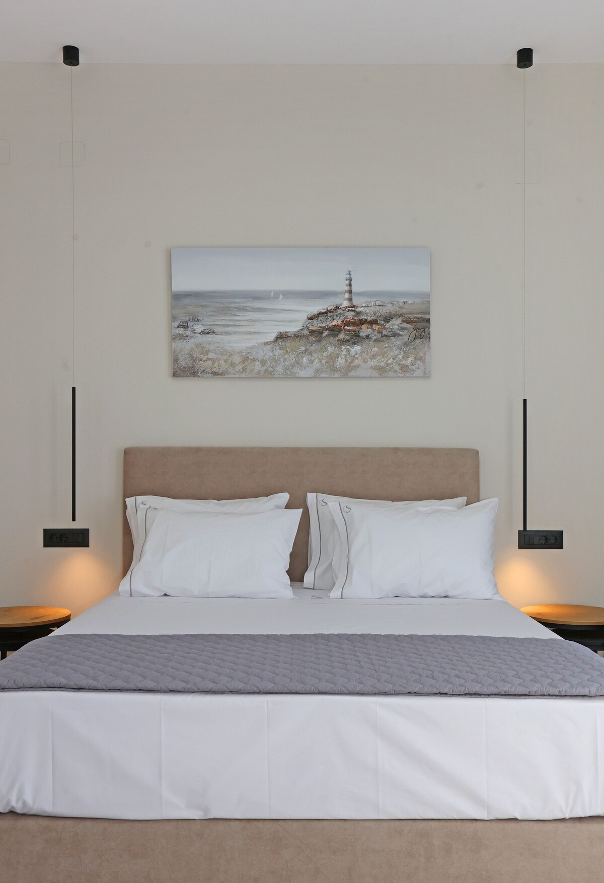 Our suite is designed with cycladic and bohemian style. It features handmade furniture and top quality fabrics and equipment. It have an infinity pool with sea salt and a small pool in front of the suite. Enjoy the breathtaking sea view drinking a glass of wine. The suite is located in Megas Yialos Syros. You can also book your private chef experience with our michelin star experienced owner. We are looking forward to meet and host you!