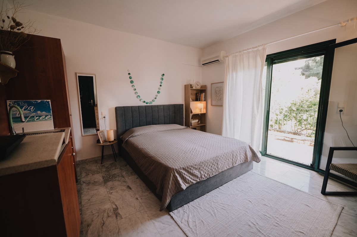 Το studio βρίσκεται ακριβώς πάνω στο κύμα, σε μια απολύτως ήσυχη περιοχή. Ο χώρος προσφέρει απόλυτη ιδιωτικότητα. Η παραλία ακριβώς μπροστά στο σπίτι είναι αποκλειστικά για εσάς. Μπροστά υπάρχει μεγάλη βεράντα με απεριόριστη θέα στο απέραντο γαλάζιο. Πίσω υπάρχει μικρός ελαιώνας με άνετο χώρο στάθμευσης, μπάρπεκιου και μικρός λαχανόκηπος που όλα το προιόντα του προσφέρονται δωρεάν στους επισκέπτες. Ο χώρος είναι μοναδικός, ιδανικός για χαλάρωση και ήρεμες διακοπές.