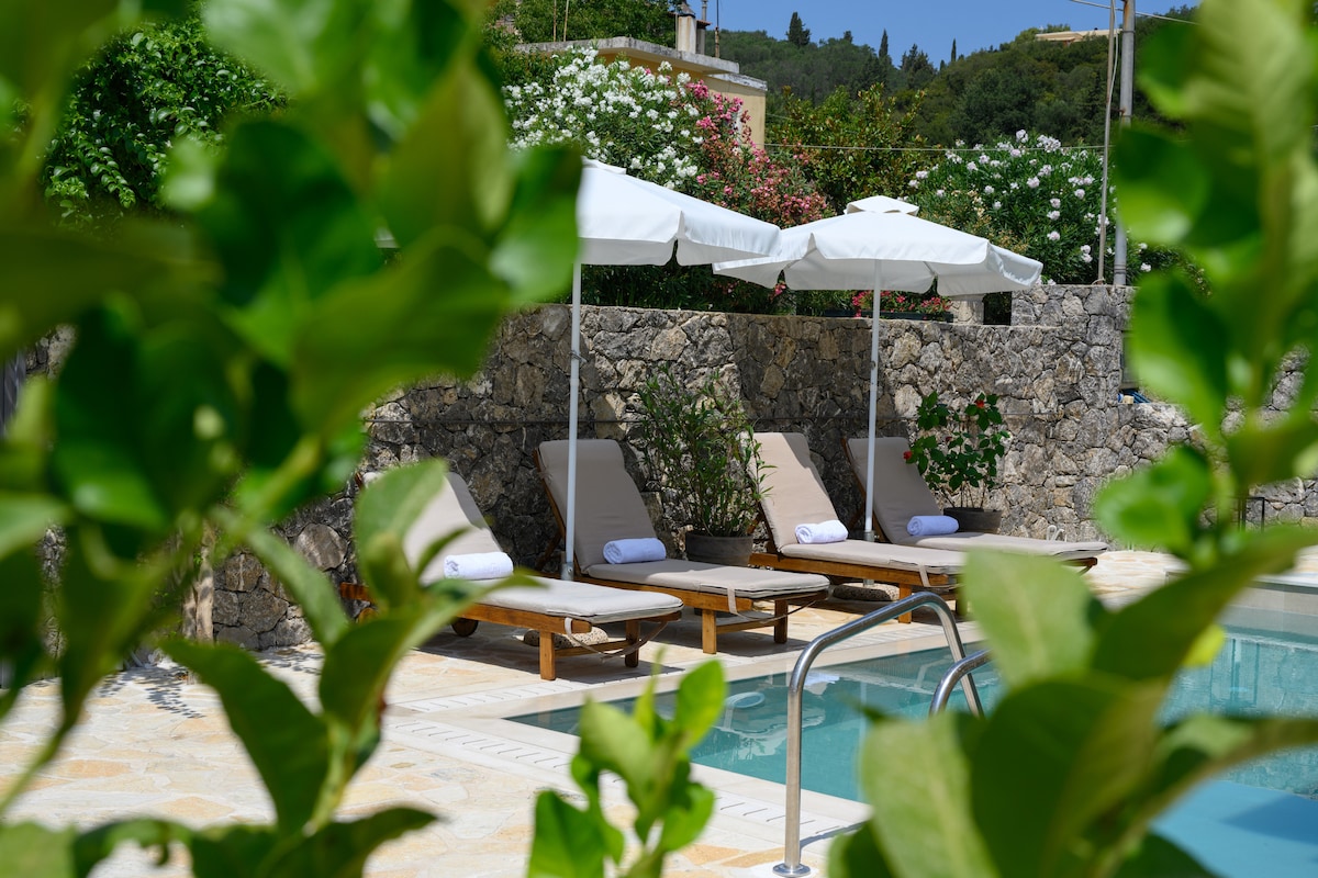 "Escape to Antipaxos' picturesque island in this luxurious villa! Enjoy: The amazing villa, built with Paxos traditional stone Private pool & 3 chill-out areas 2 spacious bedrooms with en-suite bathrooms & king-sized beds Fully equipped kitchen, bathrooms & laundry room Thoughtful amenities: Wifi, TV, Games, Personal care devices, cleaning, shuttle service and many more. Spacious Terraces with amazing view! 10-minute boat ride to Paxos. Perfect for couples & families seeking relaxation.