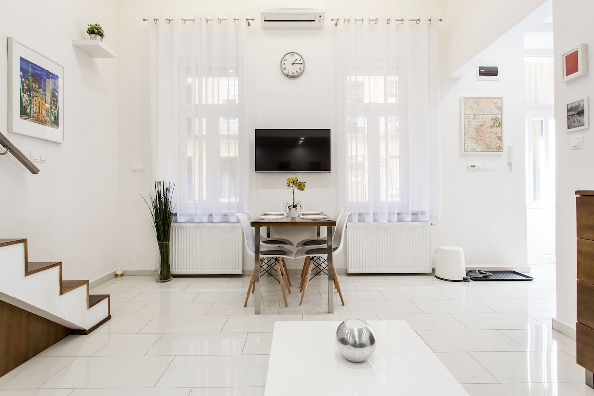 Welcome to Maximalista Expat Lofts in Budapest’s vibrant District VII, each a design marvel with 4-meter-high ceilings and sweeping panoramic windows. Fully equipped for everyday cooking and seamless remote working, our lofts are steps from the bustling Jewish Quarter, City Park, and Keleti Railway Station, providing a premier base for extended stays and an exceptional expatriate lifestyle.
