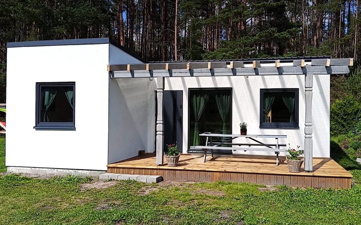 Wynajem domku nad jeziorem Ciemino. Domek ma powierzchnie 50 m². Na parterze jest salon z kominkiem, wyposażona kuchnia oraz łazienka z prysznicem. Na antresoli łóżko małżeńskie i łóżko pojedyncze. Na ogrodzonej działce znajduje się zadaszony taras, wiata oraz basen wolnostojący (2,5m x 5m). Domek jest położony zaledwie 3 min spacerem od lasu i jeziora. Dla gości mamy do dyspozycji 3 rowery. Na działce jest hamak, leżaki i huśtawki. Dostępne są również łódka i kajak. Zwierzęta są mile widziane.