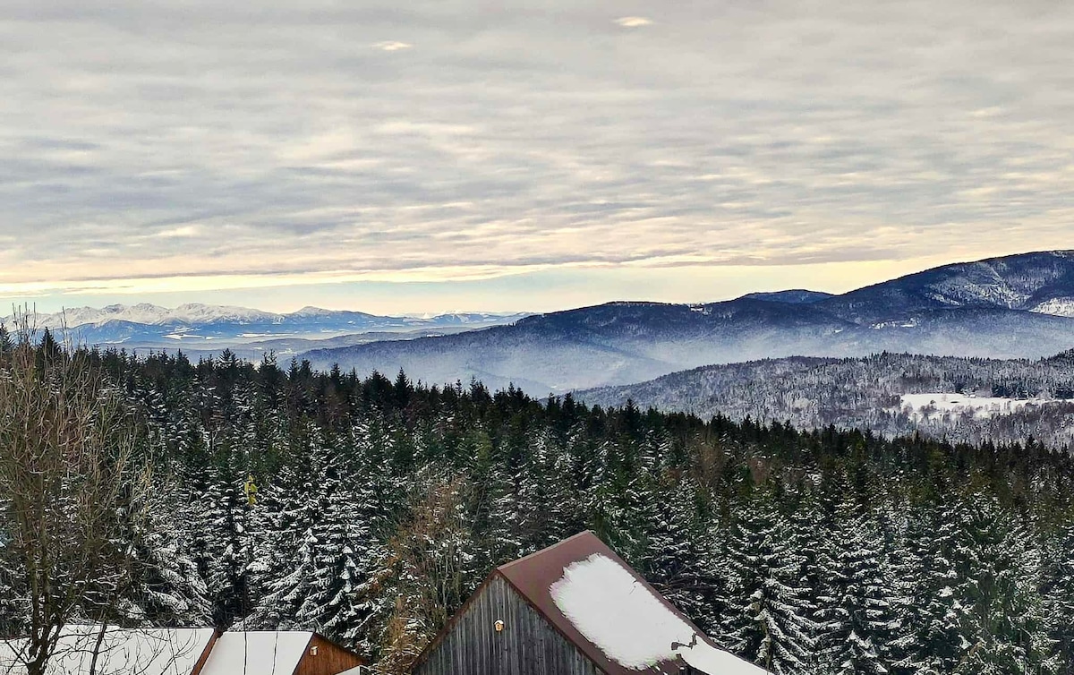松树度假木屋,带按摩浴缸,可欣赏巴比亚山的美景