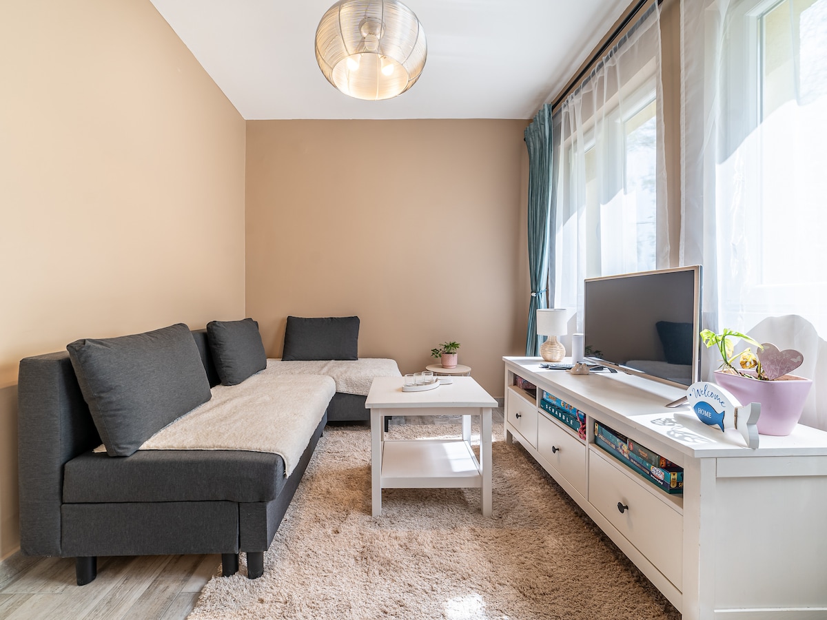 A családod mindenhez közel lesz, ha ezen a központi helyen szálltok meg. Az apartman elhelyezkedése központi belváros részhez tartozik de mégis a zöld környezetben. 50 méterre mellette 10 hektáros liget szabadidő központ a kényelmes romantikus esti sétákhoz. A liget nemrég lett felújítva ahol központi szerepet kapott a szabadidős tevékenység. Körbe lehet futni amit gumi pályával oldottak meg a kényelmes futáshoz, sétához. Az apartman mellett van ABC, gyógyszertár, iskola, rendőrség,