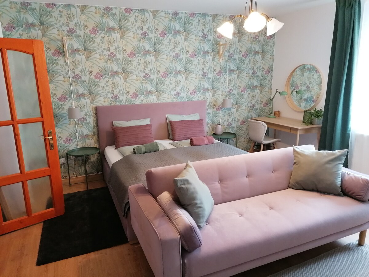 Friss, zöld színvilágú apartman 2-4 fő számára ideális két hálószobával és tágas erkéllyel rendelkezik, így megfelel családok, baráti társaságok vagy üzleti ügybe városba érkezők fogadására. Az apartman kényelmes és központi elhelyezkedésű, így tökéletes választás mindazok számára, akik szeretnék élvezni a városi életet, miközben a természet közelségét is érezhetik. És hogy még kényelmesebb legyen a reggeli, ingyen friss, krémes cappuccinó remek társasága lehet a reggelihez.
