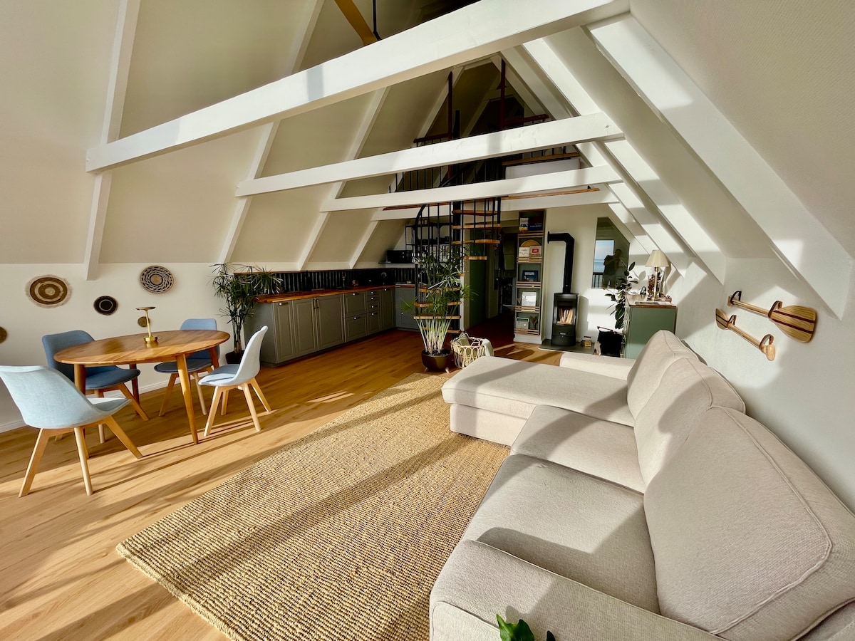 Vendégházunk a Duna-parton található, saját stranddal rendelkezik. Télen-nyáron egyaránt alkalmas bekuckózni, elvonulni, élvezni a víz és a hegyek közelségét. 4 fő számára ideális: 2 fő számára alkalmas háló-gardrób és egy szintén kétszemélyes galéria elosztásban. Konyhánk jól felszerelt: egy könnyű reggeli vagy egy hangulatos vacsora elkészítése sem gond. A kert kialakításánál fontos volt a természetes állapot megőrzése: a füvet környezetbarát módon nyírjuk, így néhol vadnövények virágoznak.