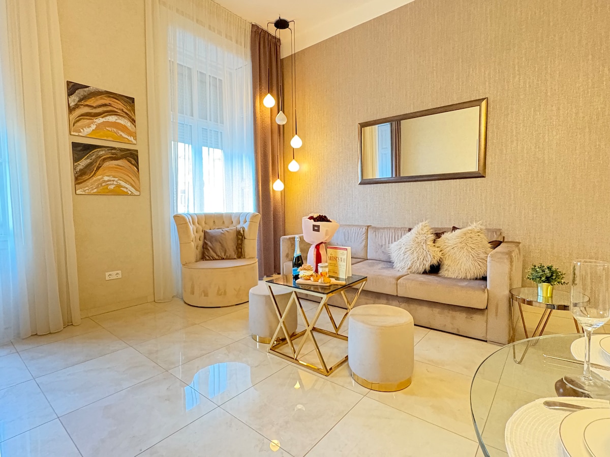GUEST FAVOURITE AWARDED, 2BEDROOMS APARTMENT HOSTED BY SUPERHOST! Romance, Spa, and Luxury A pearl in the center! Private jacuzzi, infrared sauna, massage chair, 2 bedrooms, 2.5 baths in a uniquely apartment! We tried to recall the atmosphere of the spa town of Budapest in the 1920s and 1940s. The apartment, decorated in an Art Deco style, recalls the atmosphere of bourgeois luxury that aristocrats looking for relaxation, romance, and spa experience were looking for in Budapest in the 1920s.