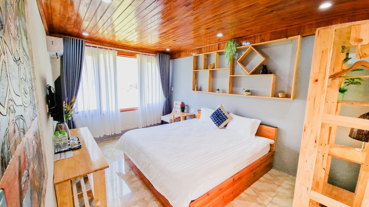 **FREE DAILY BREAKFAST** Experience the unique life atop the mountain with Rua House with clouds under your feet. A tranquil chalet for those who crave a soul shelter, with breathtaking scenery & modern comfort (with traditional furniture but modern toilet facilities & kitchen). It's 10 minutes from the crowded over-urbanized town, on the way to Ta Van village (a top visited place for tourists) This listing includes a private 1 group bedroom with a toilet outside for 4-6 people.