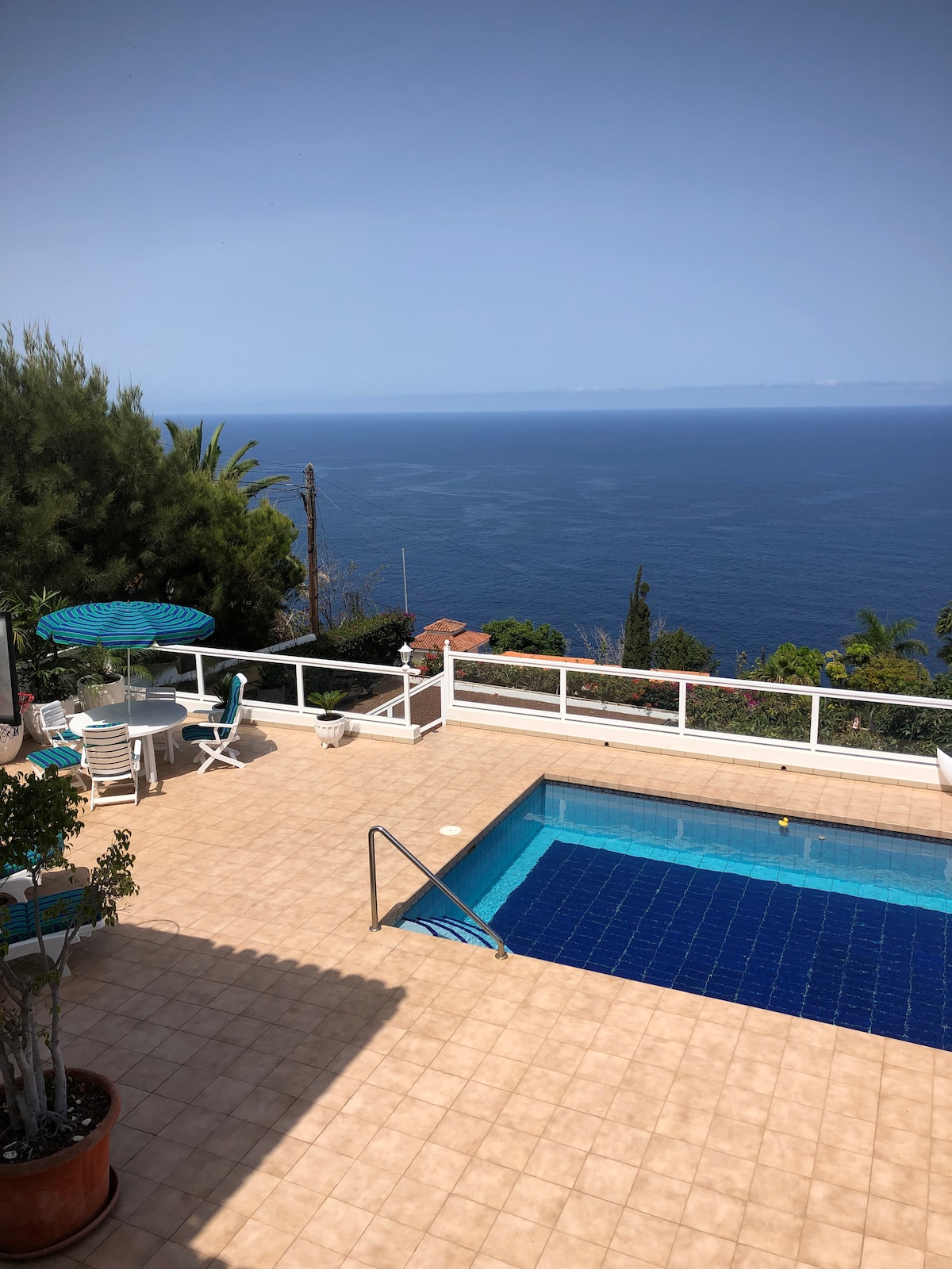 Moderna Villa de Lujo con Piscina privada( no Climatizada) parabolic 200 channels in diferents languages) 200 canales Internacionales vía satélite, maravillosas vistas al Puerto de la Cruz, al Valle de la Orotava y al Teide, así como de la Isla de La Palma en el momento de la puesta de sol, de las que podrás disfrutar no solo desde la terraza y la piscina, sino desde la misma cama. Las habitaciones son auténticos miradores de cristal, cómodas y decoradas con encanto.