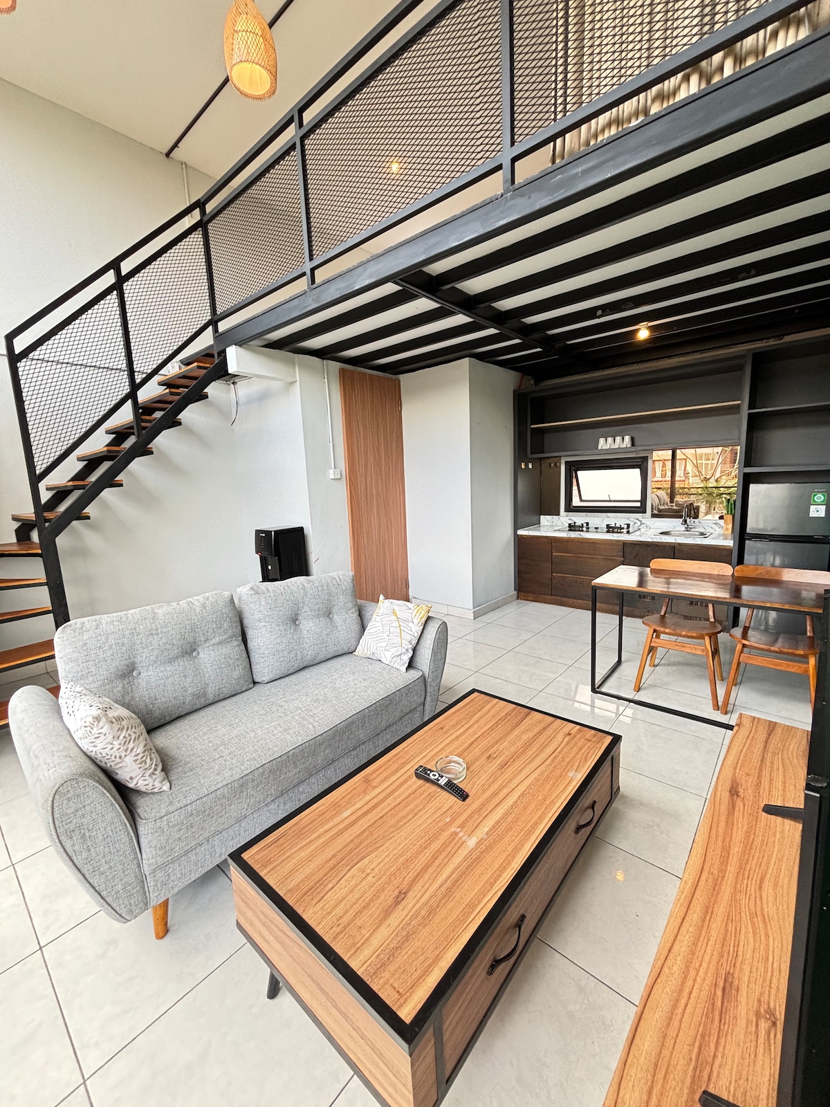 Escape to a stylish mezzanine loft in Tabanan with a forest-view hot tub – perfect for relaxation or remote work. This minimalist space features a fully equipped kitchen, fast Wi-Fi, and modern design touches. Located just minutes from the black sand beach, vibrant local market, and stunning sunsets, it’s an ideal retreat for digital nomads or couples looking to discover the real, untouched Bali – far from the tourist crowds.