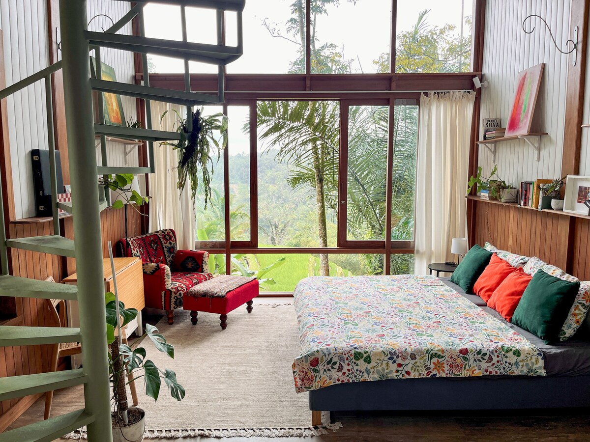 A Peaceful, Private Nature Emerson A beautiful self contained 2 level Cabin nestled next to the Batukaru Rainforest. The cabin has stunning views to the Rainforest with beautiful windows throughout to bring in the light & take in the views! Ideal for 1- 2 people, 2 extra people can sleep upstairs on day sofa beds. Take it easy at this unique and tranquil getaway or work remotely with wifi throughout the property. Great birdwatching with the rainforest 3 mins walk away.
