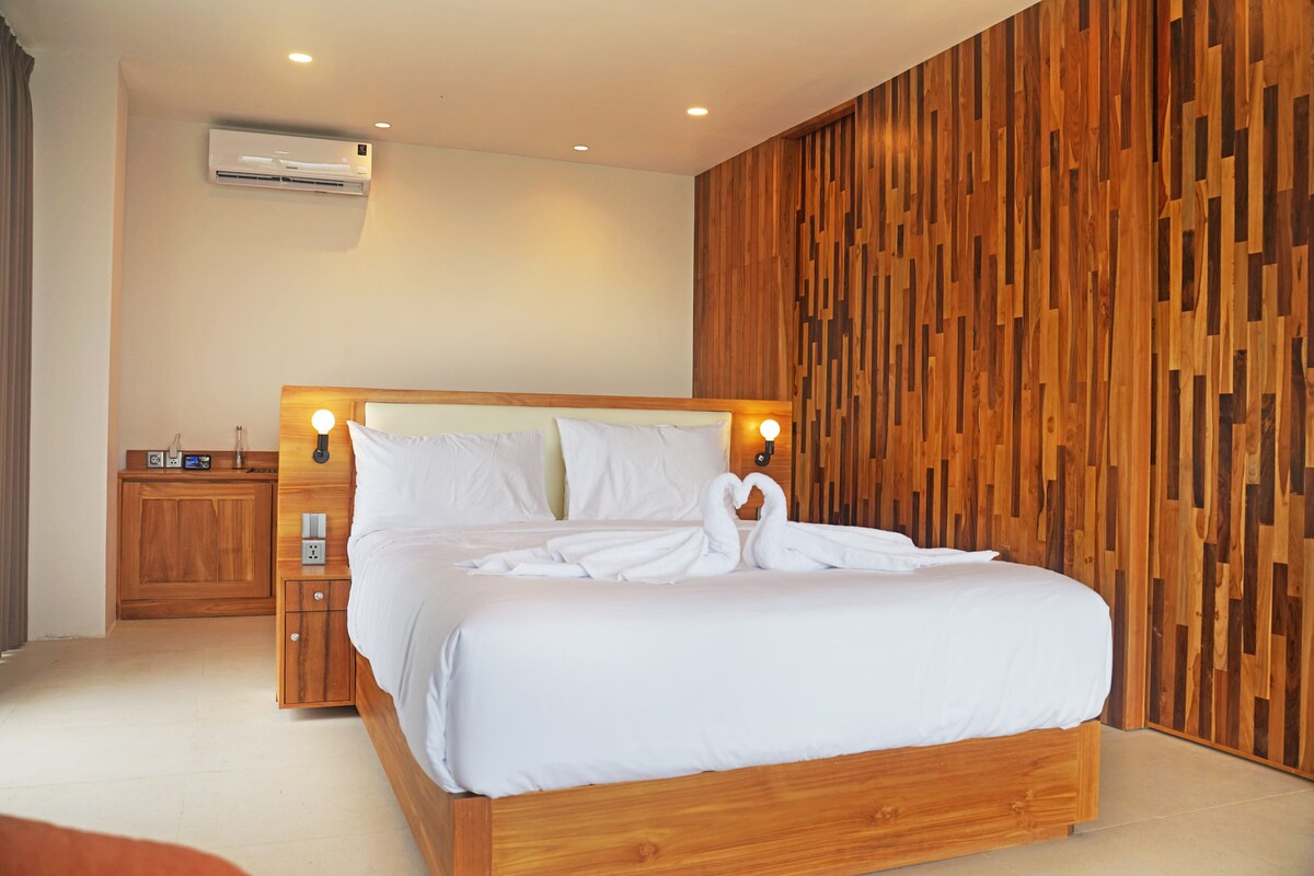 A private wooden pool villa with private kitchen and air conditioning. Wifi connection is available. Great place for family or group of 4. Also perfect remote location for travellers while working remotely. Resort service is available such as breakfast, lunch, dinner at the onsite restaurant, with free access to Umadhatu Waterpark everyday. Laundry service is available. Tour desk and transportation is available based on given information from the front office.