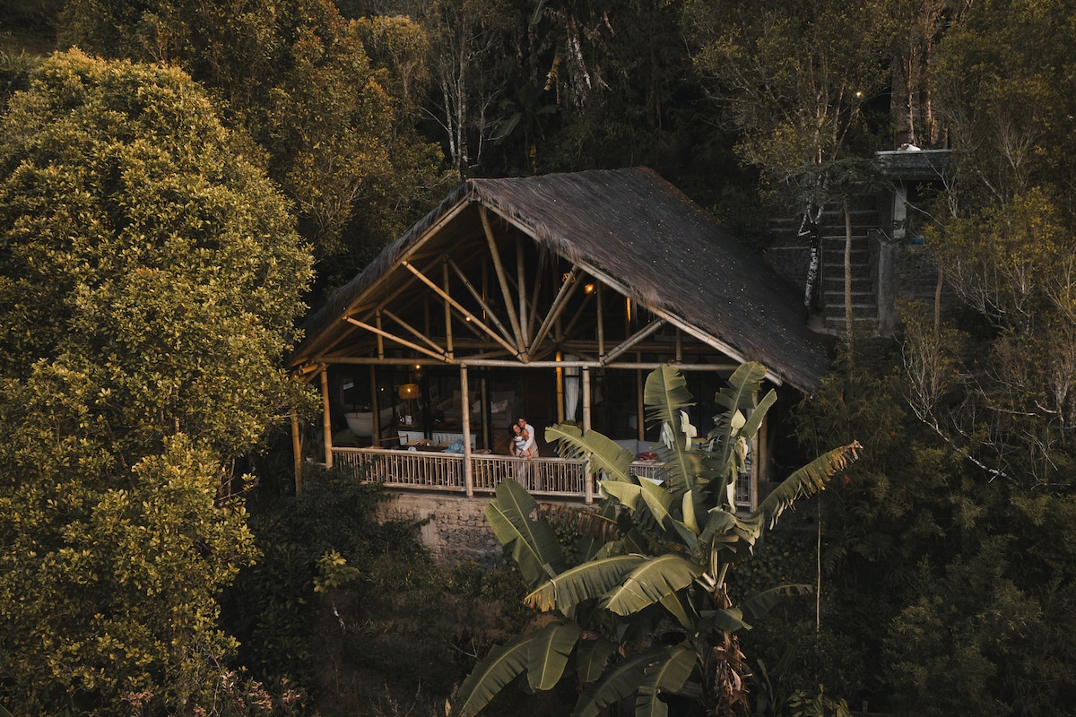 This beautiful 2 level Tree house is handcrafted from local timbers & bamboo, with spectacular views of the forested valley to Sth Bali & the peak of Mt Batukaru. With 2 private bedrooms, each with their own spacious lounge areas. Outdoor entertaining area, great for birdwatching or happy hour. Indoor tropical garden bathroom. Kitchenette, mini bar - Stocked with beer & drinks (Paid) Perfect for families, friends, or a lush stay for couples. Restaurant, Sauna, Natural Pool, Massage Free 4G wifi
