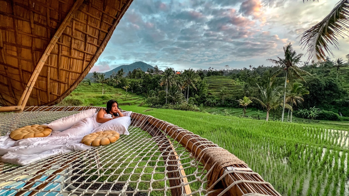 Experience luxe living in our Balinese tree house, nestled amidst the verdant countryside. This luxury cabin, resembling a tiny home, boasts an impeccable design that seamlessly blends with nature. Wake up to an amazing view of majestic mountains, right from your bed. Relax in the unique outdoor bathtub, surrounded by the serene whispers of the jungle. Feast on delightful BBQs on the private deck, set against a panoramic backdrop. Dive into the essence of Bali – where luxury meets the wild.