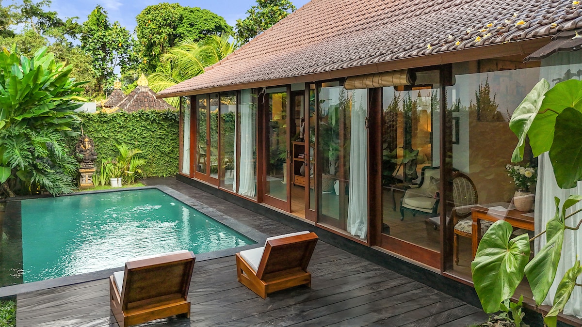 A mountain retreat bordering the UNESCO Heritage site Jatiluwih, equipped with a swimming pool facing the ricefields, a large garden and gazebo. You will be immerged into the Balinese rural life away from the tourist crowds, spending a few days hiking, relaxing in the hotprings, visiting Batukaru temple and the butterfly park, enjoying massage facing sunset, investigating local iconography in churches, with meals served by the neighbors or a nearby Balinese restaurant.