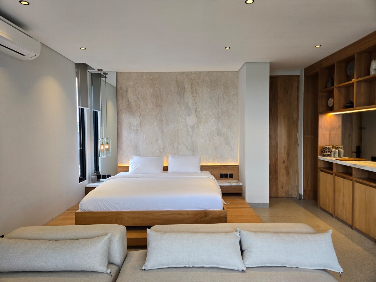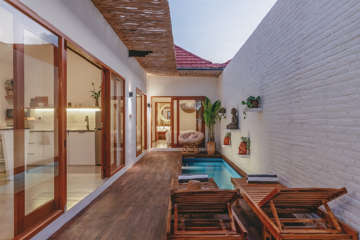Wonderful stylish place for your perfect stay in Bali: - 75 m to swell magnet spot; - Uncrowded beach, surrounded with amazing landscapes; - Privacy and serenity; - High quality linen; - 24/7 security; - Private pool; - Cozy garden; - WI-Fi, flat TV; - Fully AC; - Secure parking space for car/bikes; - Water heater; - Arranged place for the surfboards.