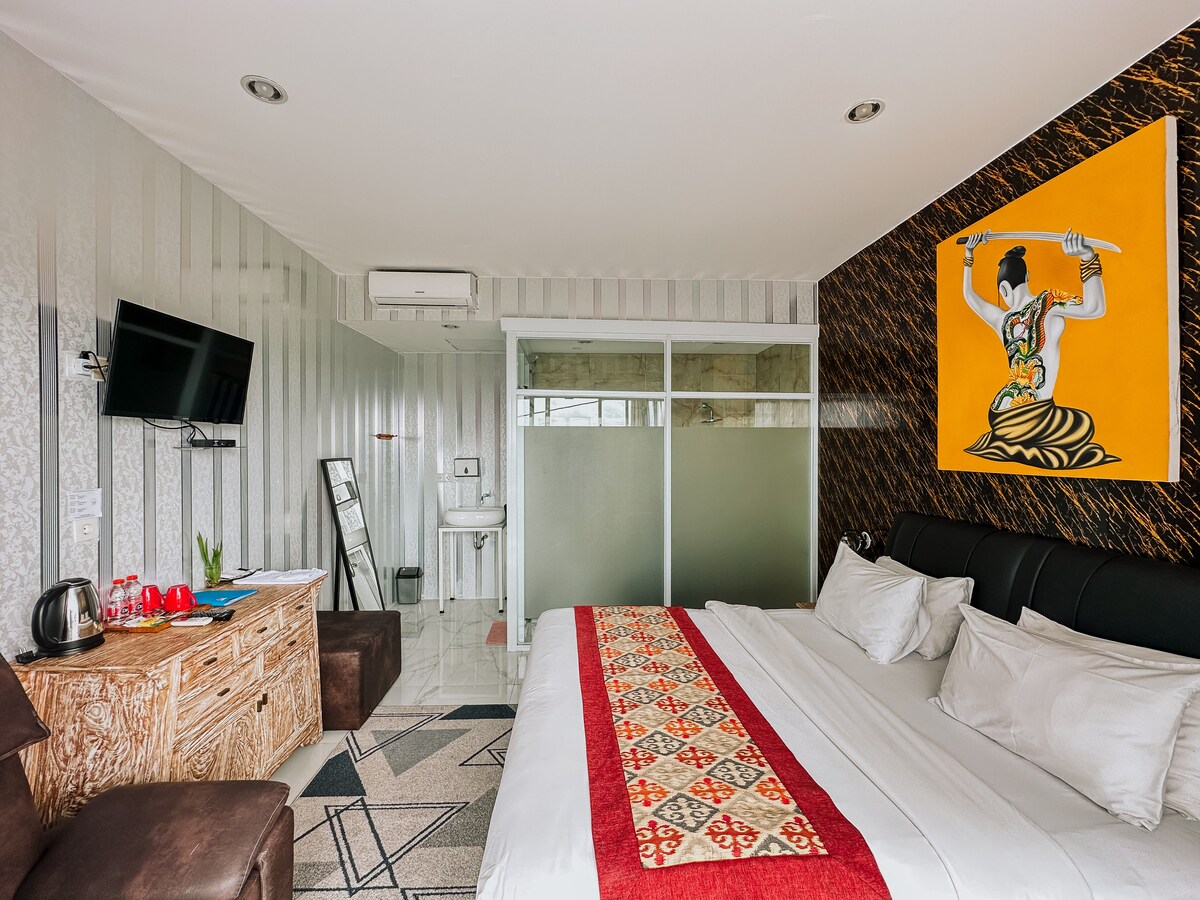 There are 9suites available for you to choose based on availability, each room has own style. Room size 23 m² equipped with : bathroom with a shower and free toiletries, AC, hot water, desk, towels, free WiFi. Some rooms are without windows The apartment is 7 km away from Seminyak Square and Petitenget Beach. Bali Denpasar International Airport is located 20 km from the accommodation