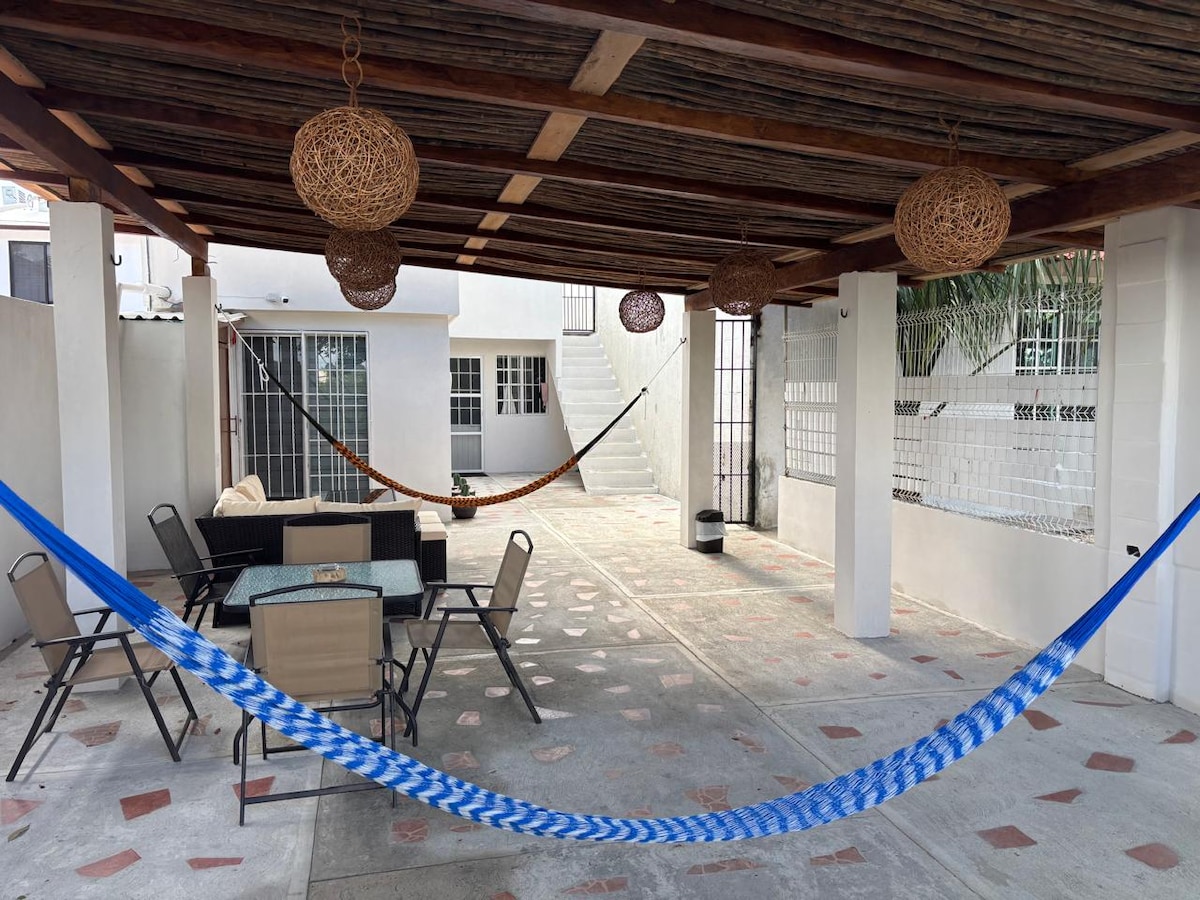 Habitacion amplia con cama King size con aire acondicionado (Mini Split) y hamaca TV cable wifi de alta velocidad cajon de seguridad y armario para ropa. También tengo otra habitación con ventilador a precio más económico.. puedes ver en este enlace.. https://www.airbnb.es/rooms/23184913 O si son familia o amigos de hasta 6 o 7 personas puedes también rentar el departamento completo puedes ver en este enlace. https://www.airbnb.es/rooms/30538375