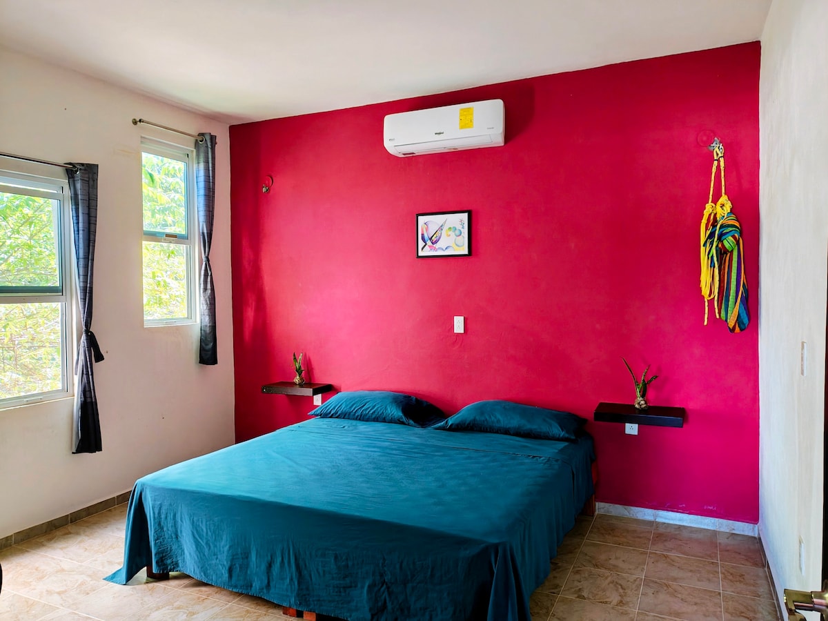 Amplia y acogedora | Pet Friendly Un espacio cómodo y relajante dentro de una casa (4-6 personas) Cuenta con 2 recámaras con cama king size; balcón, perfecto para descansar y disfrutar el entorno. Es un ambiente cálido para compartir, amenidades como juegos de mesa, libros, refrigerador y cafetera. Disponible espacios comunes en la casa: cocina, sala y comedor. Rey Pakal es un hogar con una cariñosa manada de perros y gatos, ideal para quienes disfrutan convivir con animales.