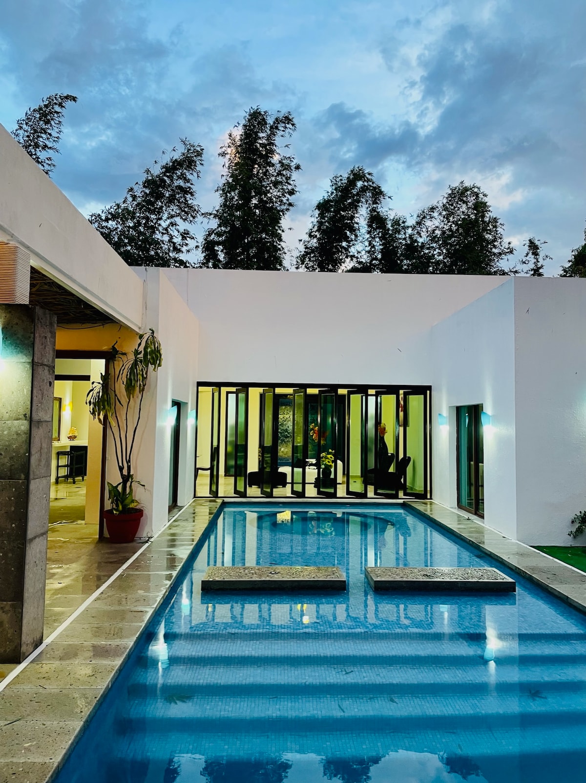 Relájate en esta escapada única y tranquila en donde la arquitectura mezcla con la naturaleza A tan solo 10 kms del centro de la ciudad y a 2 minutos del aeropuerto La propiedad es tranquila, acogedora, con mucha privacidad, y divertida con un gran jardín y una hermosa alberca además de un gran jacuzzi. Puedes prepararte una rica carnita asada tenemos una palapa de cantera con asador, espejo de agua. Tiendas de comestibles cercanas, internet, área de trabajo.