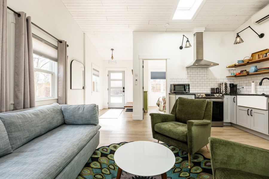 Pamper yourself in a luxurious 700 sq ft single family home in the heart of the North End. Creative touches welcome you in this home away from home, such as Viking appliances, countertops made of wood from a bowling alley and barn doors to separate the rooms. Go socialize with a two-block walk to 13th St Pub and Hyde Park just a few blocks away. Orshut out the world with a romantic gas powered fireplace, 800 Mbps Internet and high tech touches like Alexa Show. Ride an available cruiser bike!