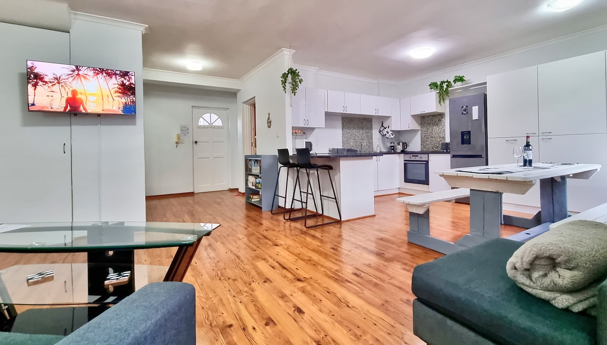Things to know up front: Guests who are tolerant of some kid/dog noise but are quiet themselves (or maybe just out a lot during the day and chilling at night) are a perfect fit. If that doesn’t work for you, no hard feelings. And now, on to the apartment… Feel at home in this private space with full kitchen, clean bathroom, lounge and charming courtyard. We're kid-friendly! Walking distance to bustling Sea Point & the Promenade, with easy access to Cape Town’s gorgeous beaches and mountains.