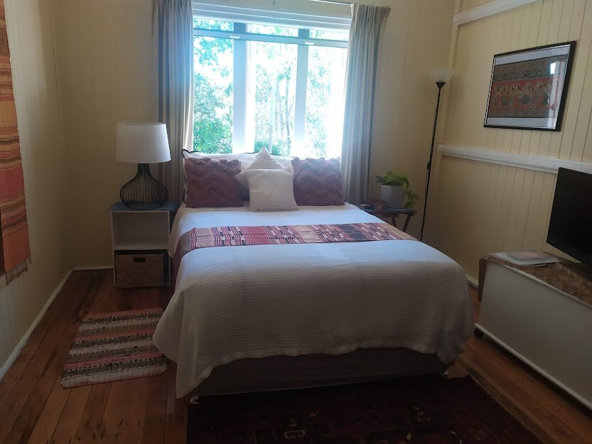 The property is an old Queenslander situated on beautiful Vine Creek. The room has lots of natural light and a comfortable double bed . You will have full access to the kitchen (for self catering), a shared bathroom and a number of outdoor decks for whiling away your day. Meals can be arranged on request at an additional cost. There is also a barbecue available for your use. This is the perfect spot for escaping the heat of the coast.