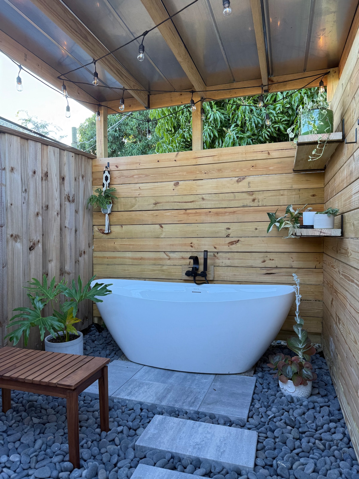 The Honey-moon Suite located in S. Cocoa Beach is a luxury Villa offering all the amenities you need to have your own private escape. The large open space backyard is the perfect retreat featuring a private 4-person hot tub, 60" flat screen TV, a "Dream sleep" king bed, queen sleeper sofa, desk space, a full kitchen, stylish walk-in shower. For those that can't disconnect there's fast 300mb download speeds for your streaming devises.