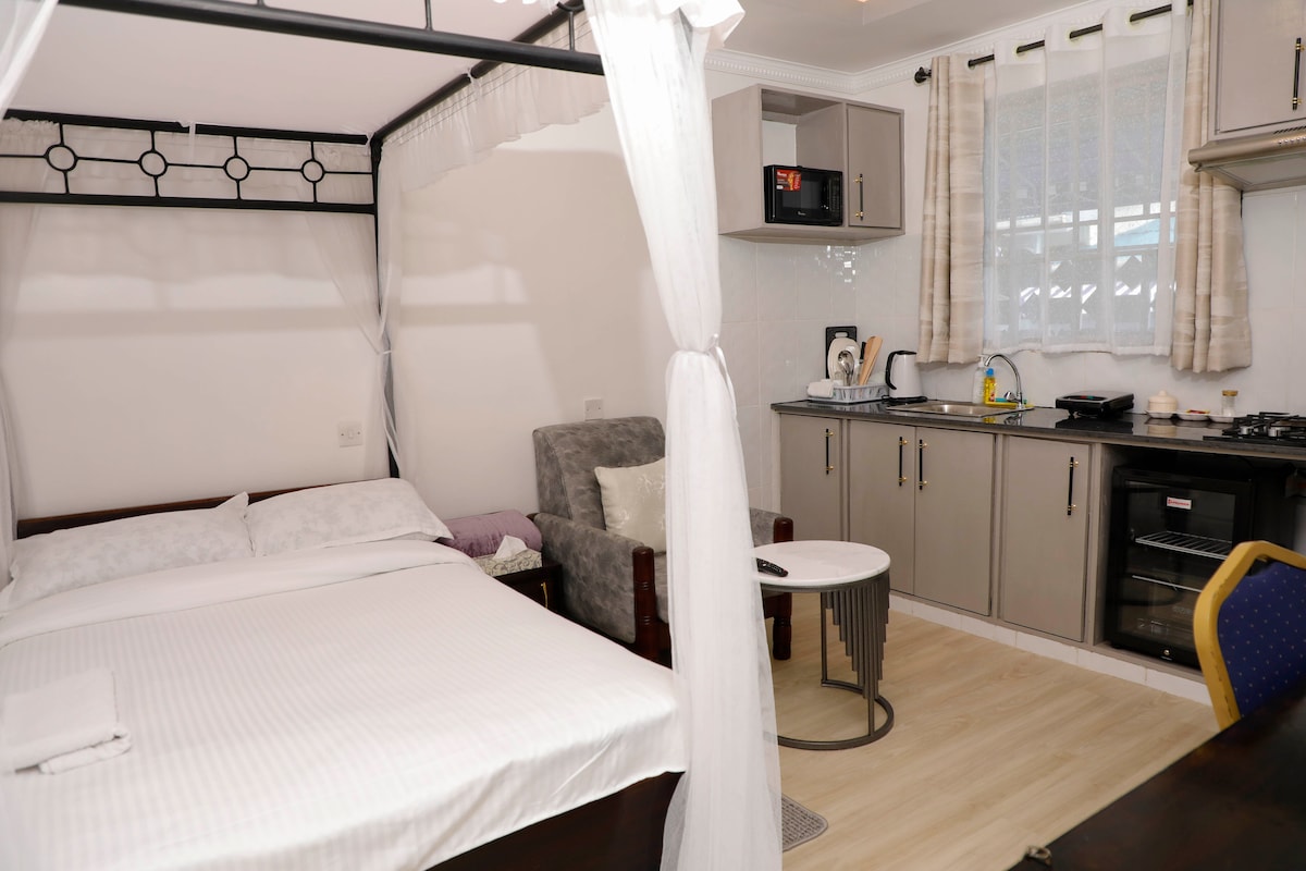 A standard studio featuring a double bed, Netflix, a fully equipped kitchenette, hot shower, fast Wi-Fi, and free on-site parking. Located just 2 km from Nakuru CBD, 1.5 km from Westside Mall, and 3 km from Lake Nakuru National Park, you’ll have easy access to everything Nakuru has to offer. Our friendly building staff are always available to assist whenever you need. Check out our identical Standard Studio B which is also available for booking.