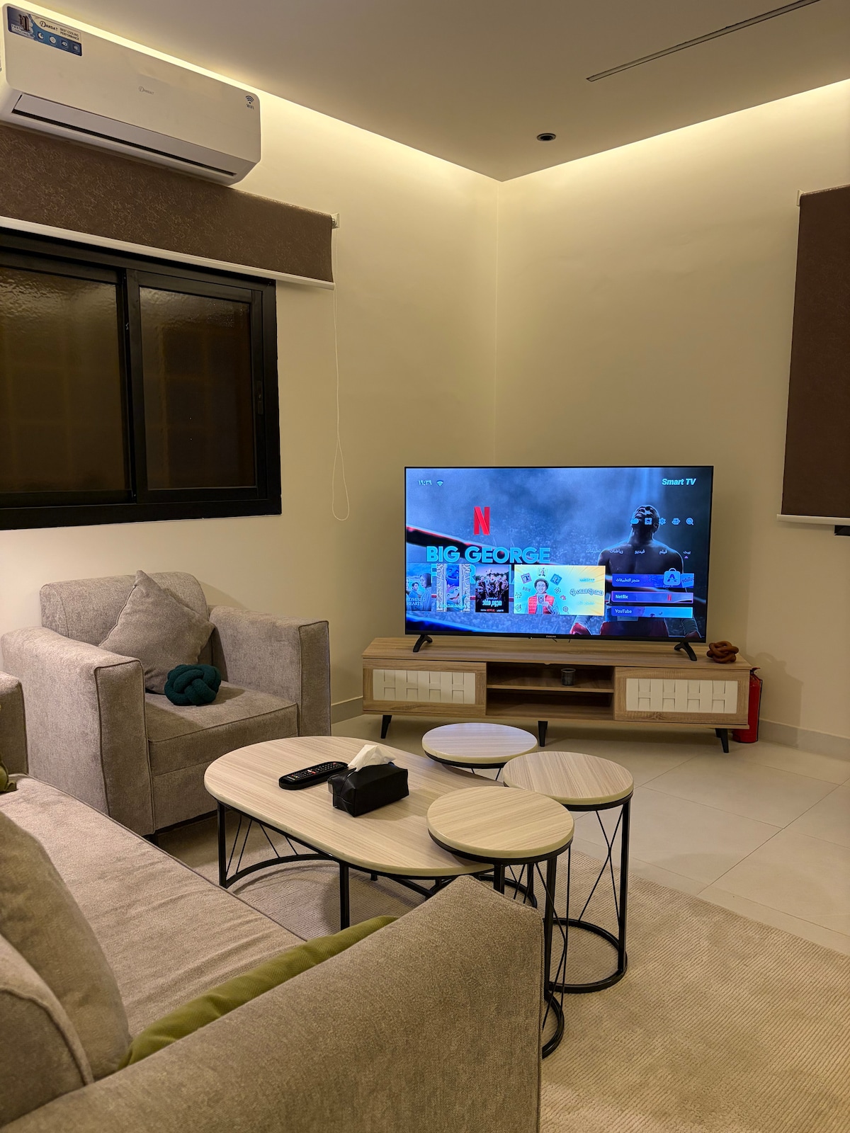 استرخ في هذي الغرفة الأنيقة وتمتع بانواع الترفيه المنزلي والخصوصية العالية والدخول الامن والشخصي . تتكون الغرفة من كنب و تلفاز ذكي و سرير كبير ودورة مياة . وتتوفر كامل احتياجات المطبخ من مكرويف وآلة قهوة وشاي وثلاجة وصحون وملاعق وكذلك تتوفر كآفة احتياجات الاستحمام " شامبو ، جل استحمام ، مناشف " ونوفر كذلك خدمة غسيل جميع الملبوسات . وكذلك متوفر منصة نتفلكس وشبكة إنترنت مجاناً . يتسع المسكن الى إقامة ٢ أشخاص وتقع الغرفة بالدور الاول ومتوفر خدمة نقل الحقائب ومتوفر مواقف خاصة للضيوف مجاناً .