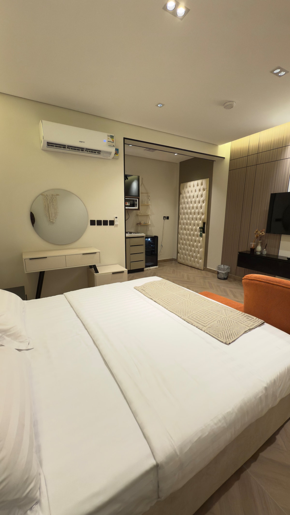 شقة عائلية بديكور عصري مثالية لإقامة مريحة وهادئة • سرير كنغ واسع ومريح. • صالة أنيقة بجلسة عملية. • حمام حديث بتشطيبات فاخرة. • تكييف وإضاءة مميزة لراحة أكبر. 🌟 خيار مثالي للزوار الباحثين عن الراحة سواء للعمل أو الاستجمام