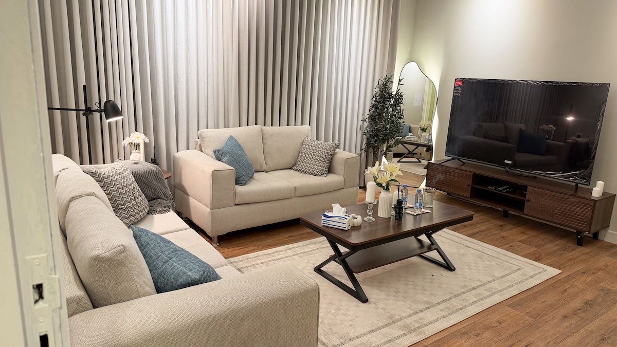 Enjoy your stay at our peaceful and centrally-located serviced apartment. We offer you hotel-like services such as (housekeeping, tv, wifi, free grocery delivery) and friendly hosting and help. Our suite apartment will feel just like home with a little Saudi culture.