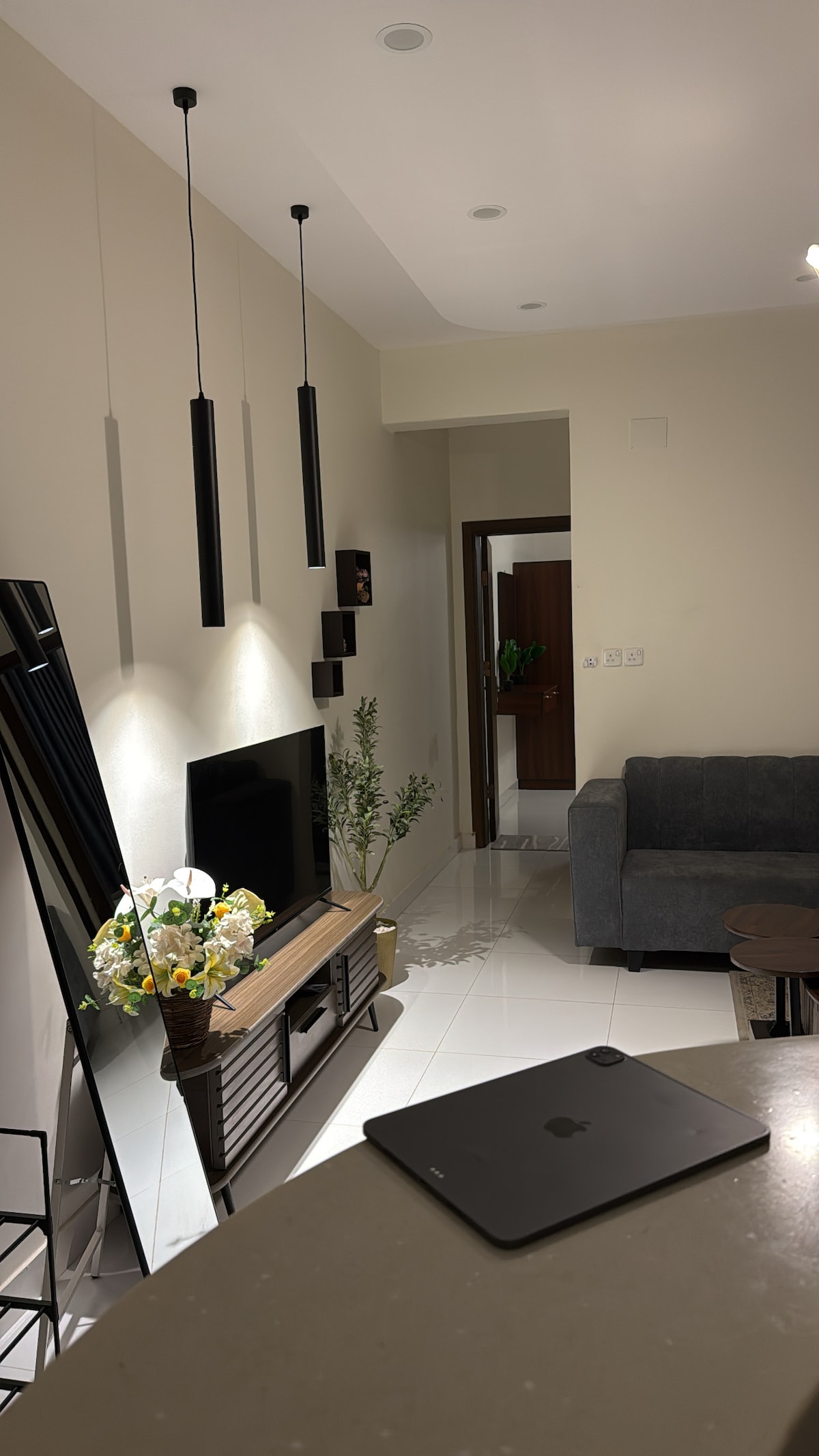 صممت هذاه الشقه بتصميم جميل ومميز شقه هادئة و امنه ب تصميم مريح بالقرب من جميع الخدمات و المطاعم العالمية والكافيها والمولات تتكون من غرفه نوم ب بسرير كبير وصاله وسطح صغير ^-^ وركن كوفي و غلاية و شاشه 60 بوصه . و مطبخ متكامل ب اواني طبخ و فرن و ثلاجه و مايكرويف و غساله و و صابون يد يقع ب الدور الثاني عماره سكنه (لا يوجد مصعد) منطقه هادئه جدا و امنه و الخصوصية التامة كما لو كنت في بيتك.