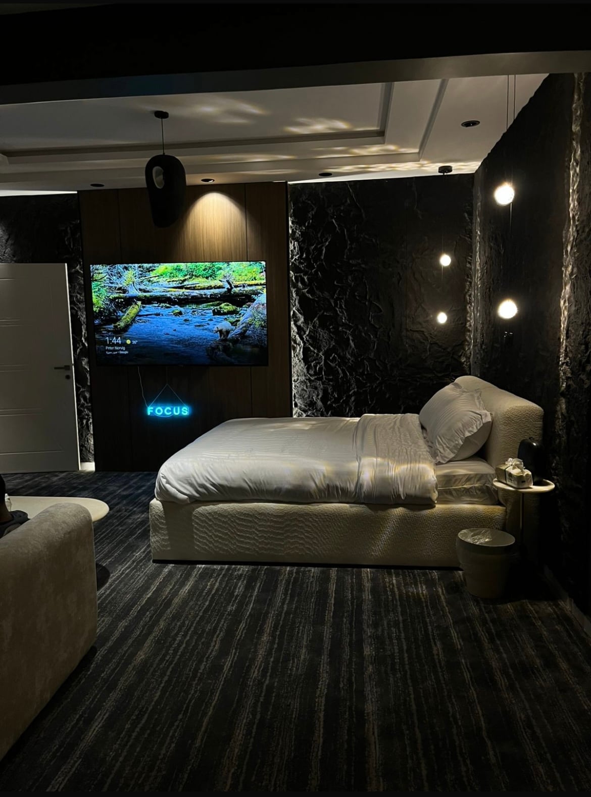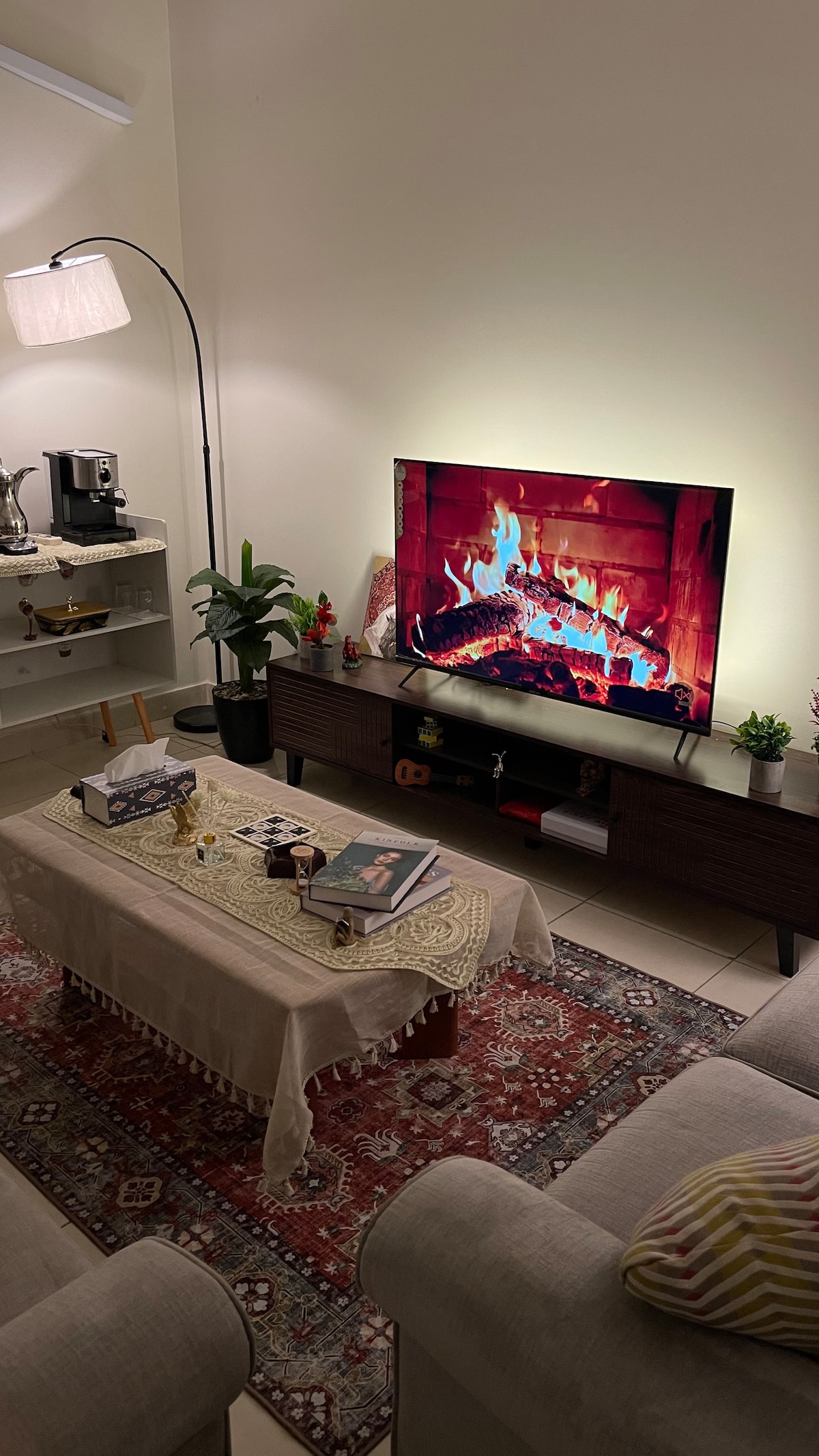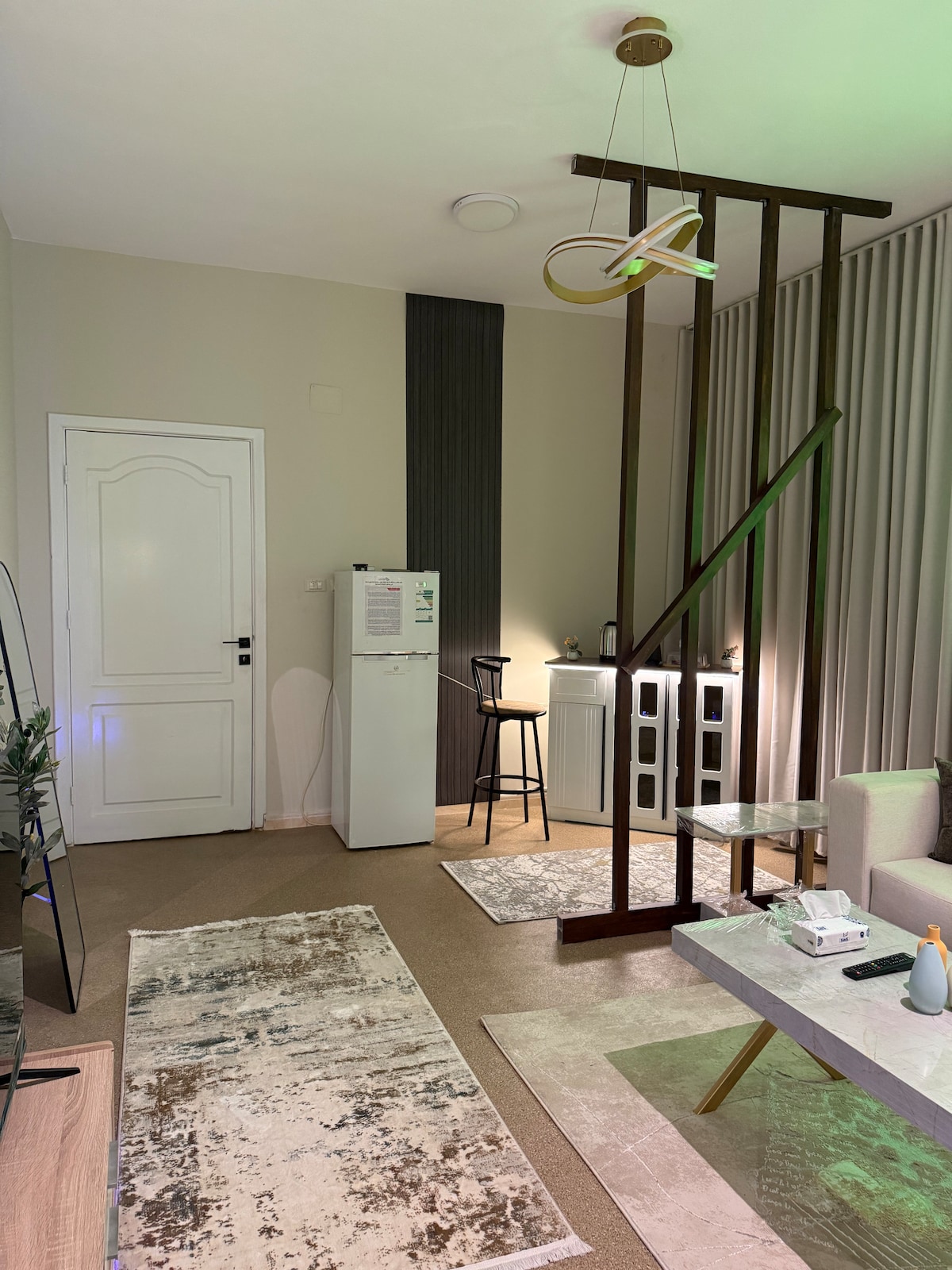 استرخ في هذي الغرفة الأنيقة وتمتع بانواع الترفيه المنزلي والخصوصية العالية والدخول الامن والشخصي . تتكون الغرفة من كنب و تلفاز ذكي و سرير كبير ودورة مياة . وتتوفر كامل احتياجات المطبخ من مكرويف وآلة قهوة وشاي وثلاجة وصحون وملاعق وكذلك تتوفر كآفة احتياجات الاستحمام " شامبو ، جل استحمام ، مناشف " ونوفر كذلك خدمة غسيل جميع الملبوسات . وكذلك متوفر منصة نتفلكس وشبكة إنترنت مجاناً . يتسع المسكن الى إقامة ٢ أشخاص وتقع الغرفة بالدور الاول ومتوفر خدمة نقل الحقائب ومتوفر مواقف خاصة للضيوف مجاناً .