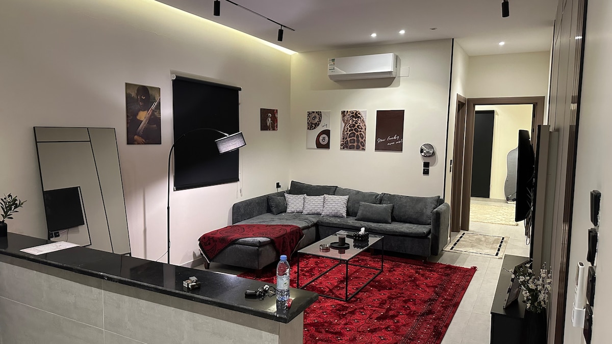 شقة عائلية بديكور عصري مثالية لإقامة مريحة وهادئة • سرير كنغ واسع ومريح. • صالة أنيقة بجلسة عملية. • حمام حديث بتشطيبات فاخرة. • تكييف وإضاءة مميزة لراحة أكبر. 🌟 خيار مثالي للزوار الباحثين عن الراحة سواء للعمل أو الاستجمام