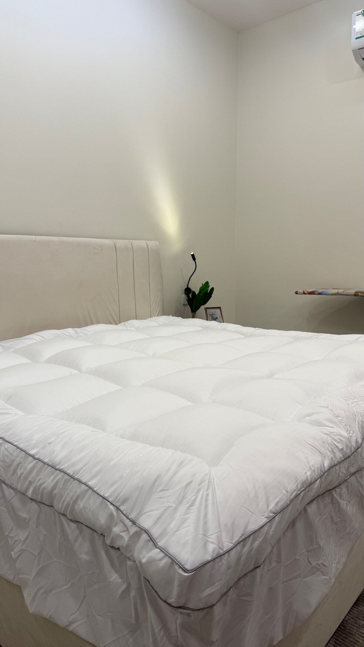 شقة فاخر وبتصميم أنيق مكونه من غرفة بسرير ماستر وصاله بوجود كنب يكفي 7 أشخاص وايضا تلفزيون ذكي واضاءة مخفية وانترنت مفتوح ومطبخ مجهز بالكامل ودورة مياه ودخول ذاتي