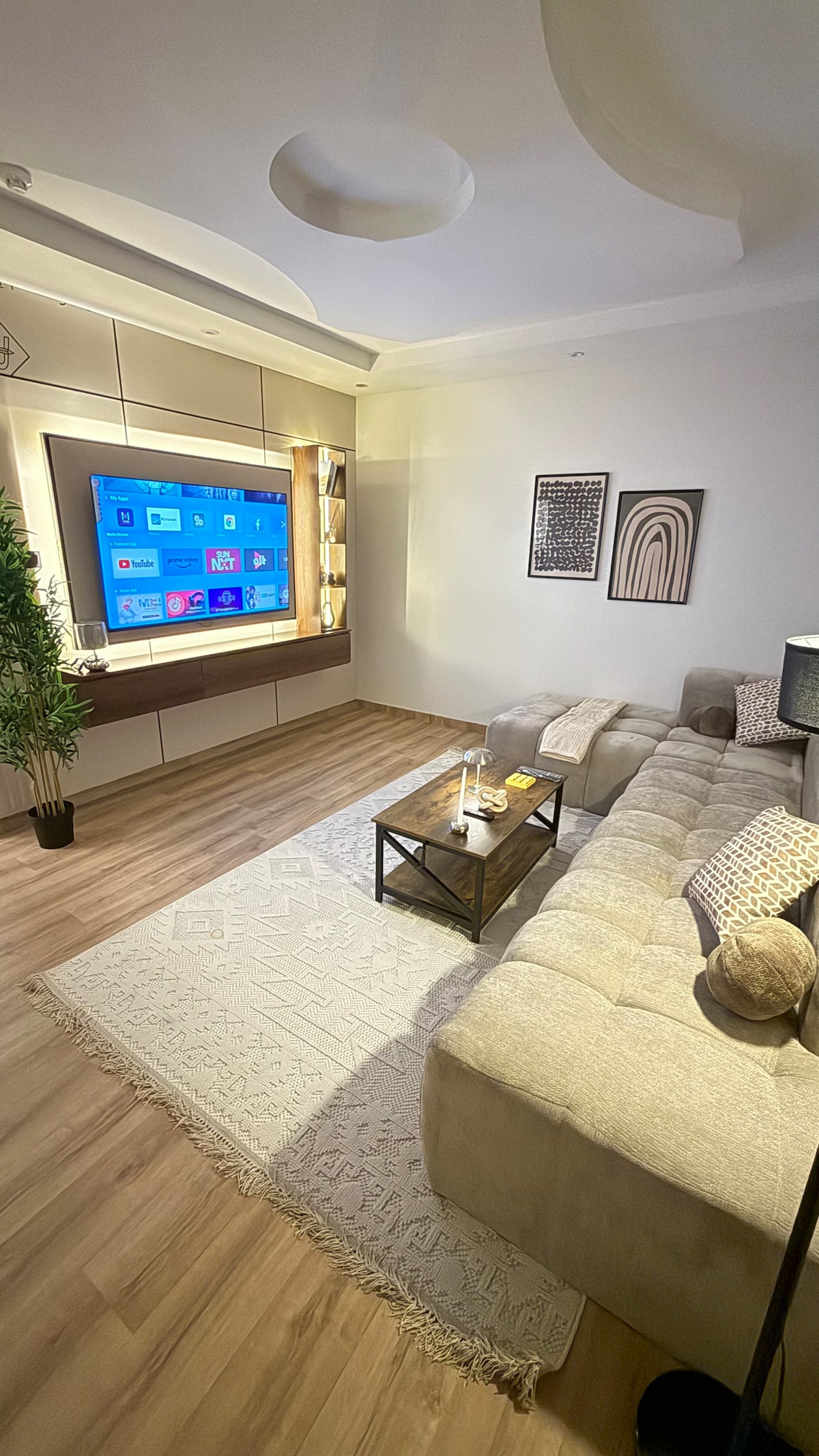شقة فندقية أنيقة بالقرب من المطار استمتع بإقامة فاخرة في شقة بتصميم عصري يجمع بين الأناقة والراحة. تقع الشقة في موقع استراتيجي بالقرب من المطار، ضمن منطقة حيوية تتوفر فيها جميع الخدمات الأساسية من مطاعم، مقاهي، وأسواق. مميزات الشقة: • إنترنت ألياف بصرية بسرعة 500 ميغابت لتجربة تصفح سلسة وسريعة • مطبخ متكامل مجهز بأحدث الأدوات والأجهزة • غسالة وكاوية لراحة الضيوف أثناء الإقامة • تصميم داخلي فاخر بأثاث مريح وإضاءة مدروسة • بيئة هادئة تضمن لك إقامة مريحة سواء كانت قصيرة أو طويلة