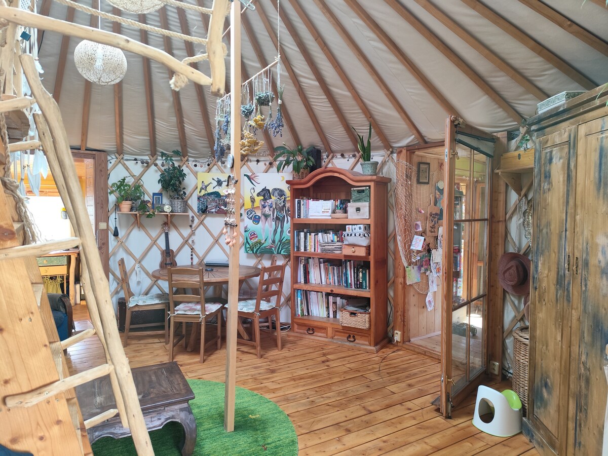 Looking for a place in untouched nature to relax from the stress and the hustle and bustle of everyday life? In the Valley of Herons you will find natural buildings in which you can stay (log cabins, tipi). The cottages have their own equipped kitchen with fridge, showers and toilets in the shared washroom. The place is in beautiful nature. You can go on a trip to the nearby castles and natural parks. Swimming in the neighboring Hare Pond or in the flooded quarry nearby. Ideal for cycling trips.